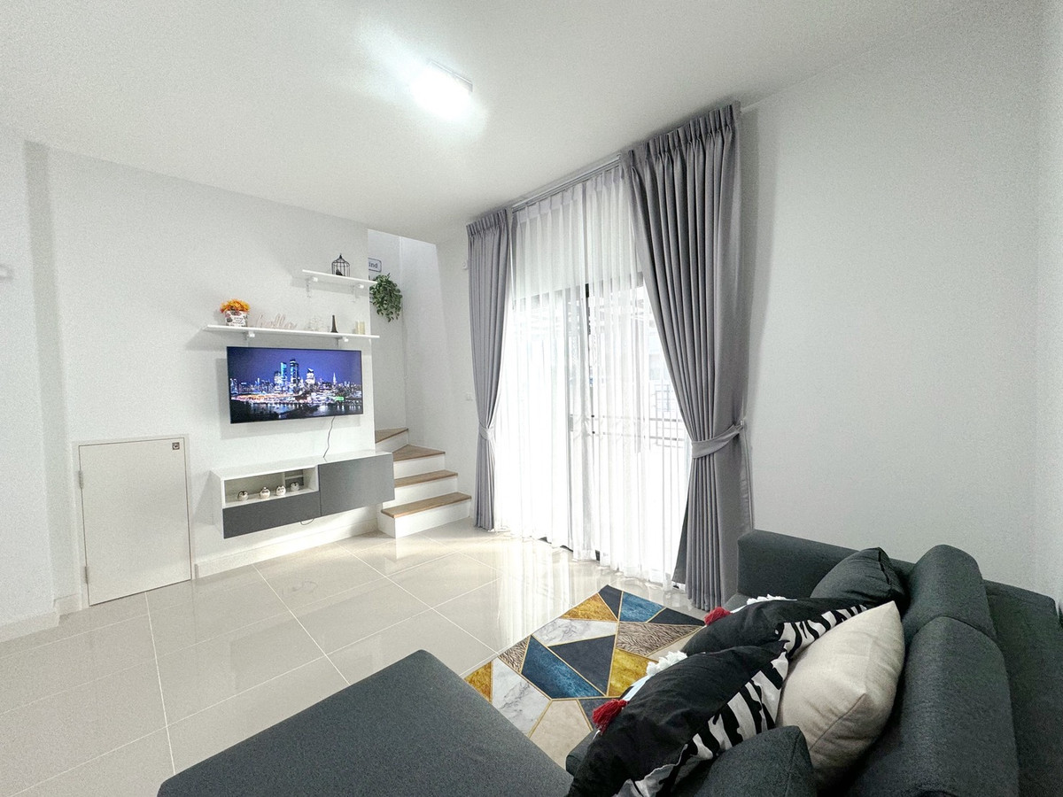 💰 Rent: 15,500 THB/month 🏡 House for rent in Pleno Town, Ban Kluai-Kanchanaburi, fully furnished and ready to move in. ➡️ 105 sq m of living space ➡️ 2 bedrooms, 🛁 2 bathrooms ➡️ 1 living room, 🍽️ 1 k