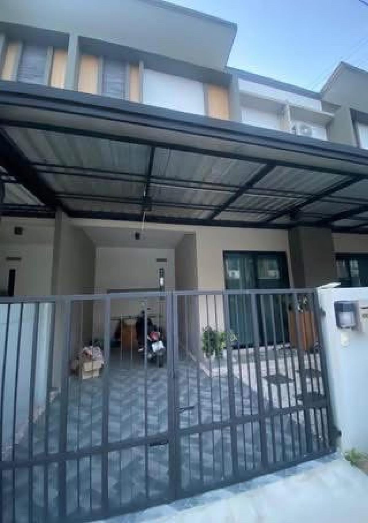 **Available 5 December 2025 📍Esgate Town Ratchaphruek Project - 345 📌 Location: Soi Wat Lam Pho, Lam Pho Subdistrict 🏡Area size 18 sq m (2 bedrooms, 2 bathrooms) House adding a roof in front of the ho