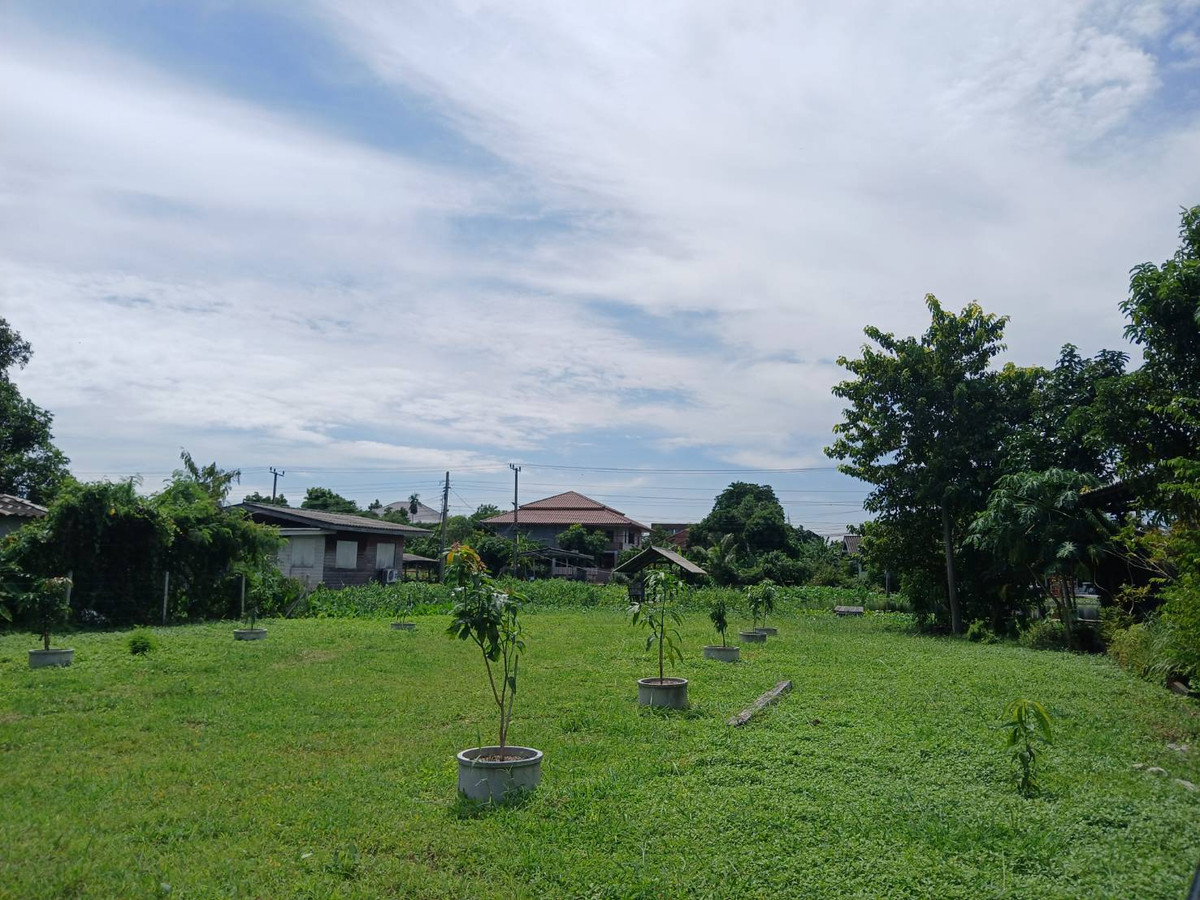 Empty land for rent, 2 ngan, area 800 square meters , quiet, shady. There is a waterfront pavilion next to the Om Non canal at the exit. Chao Phraya River, Nonthaburi Only 1.5 kilometers from Ratchaph