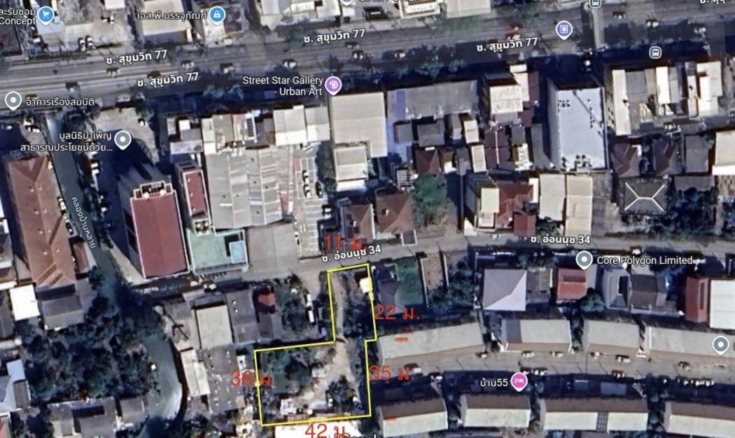 Land for rent on Soi On Nut 34, 1 rai, 68 sq wah, near BTS On Nut. :: Highlights :: Land for rent, 1 rai, 68 sq wah, on Soi On Nut 34, 350 meters from the entrance to Sukhumvit 77 Road. Two plots of land: The first plot has 5-meter-wide road frontage, 11 meters wide, and 22 meters deep. The inner plot is rectangular, easy to use, 42 meters wide and 35 meters deep. Total area: 1 rai, 68 sq wah. Long-term lease available. Ideal for offices, warehouses, and other businesses in the central Sukhumvit On Nut area. Asset Information Asset Code: L084252 Property Type: Land Land Size: 1-0-68.00 rai :: Details: - Land Area: 1 rai 68 sq.wa :: Nearby Locations: - BTS On Nut (4.6 km) - Lotus Sukhumvit 50 (5.6 km) - True Digital Park (6.4 km) - Big C On Nut (3.2 km) - Srinakarin Road (3.2 km) - MRT Srinakarin Station (3.3 km) Coordinates: http://maps.google.com/maps?q=13.726,100.628 Price: 85,000 baht (Price: 182 baht/sq.wa) Contact: eraholding Contact number Line: @erathailand