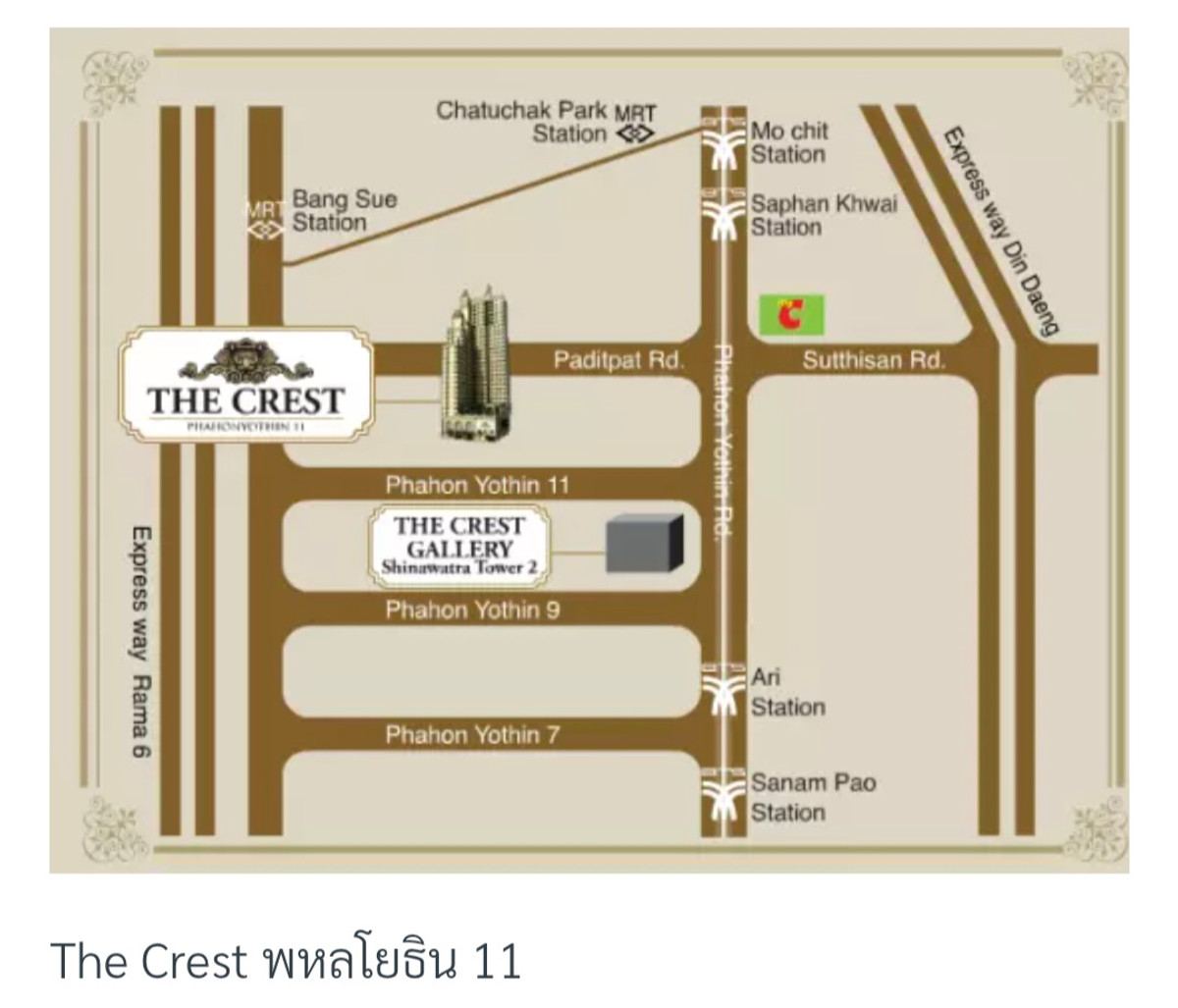 🏤 Condo The Crest Phahonyothin 11, open view, 21st floor, ready to move in, large room 46.69 sq m., convenient travel, near BTS Ari / Saphan Khwai, plus furniture. electrical appliance (transfer 50/50