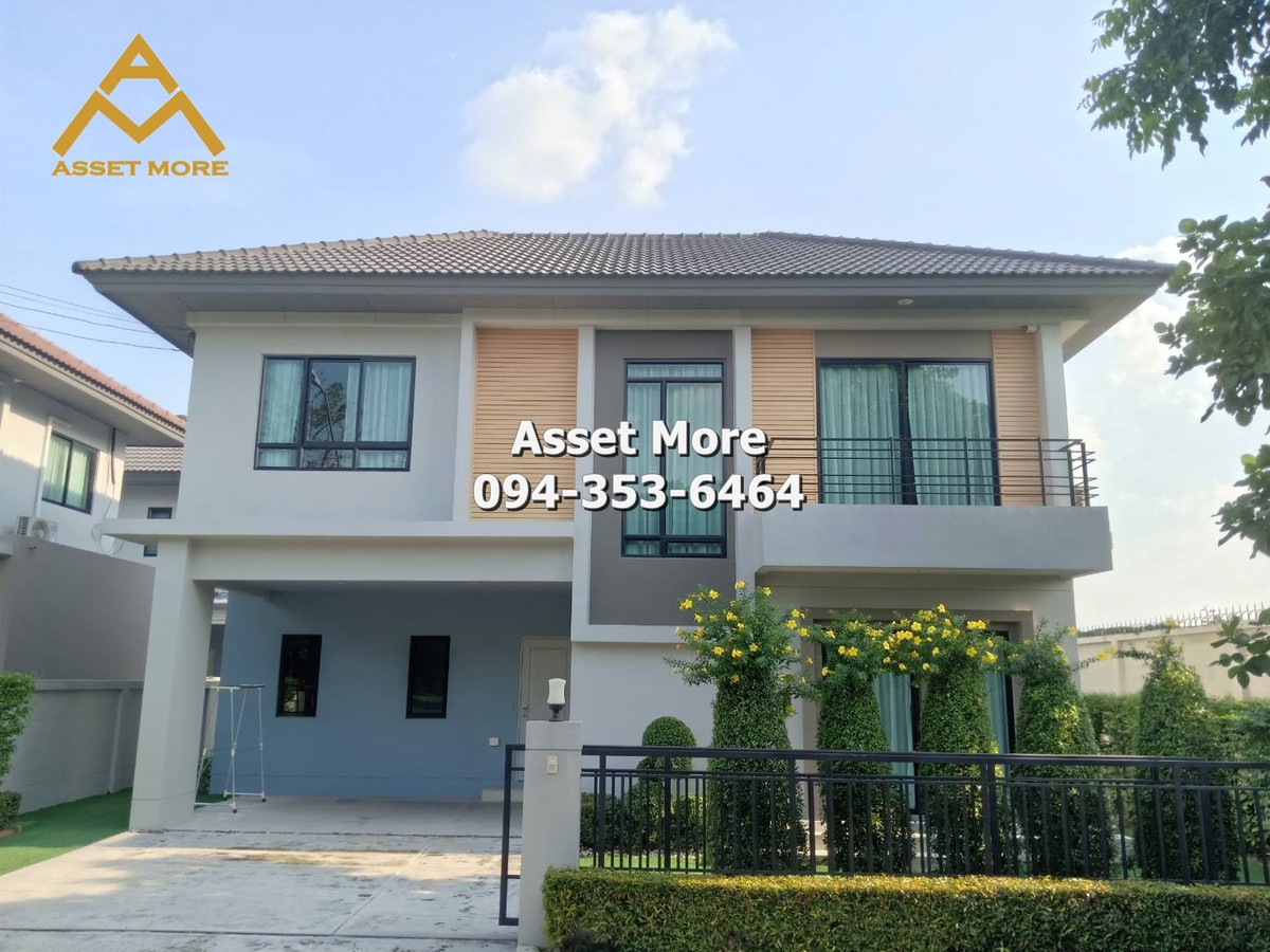 2-story detached house for rent Life Bangkok Boulevard, Ramintra 65, corner plot house, garden view in front of the house, wont bump into anyone , next to the central garden. Ready to move in Near the