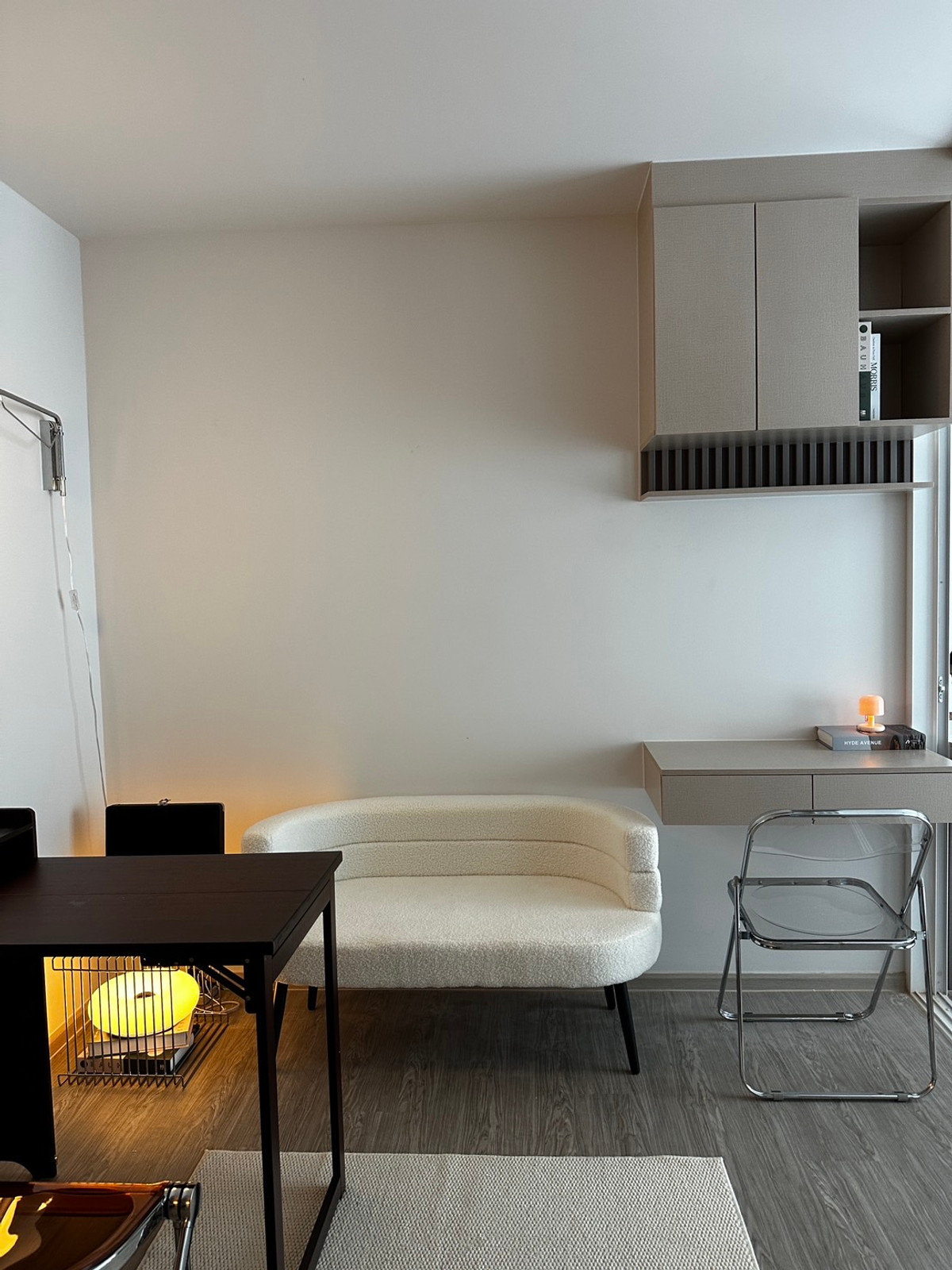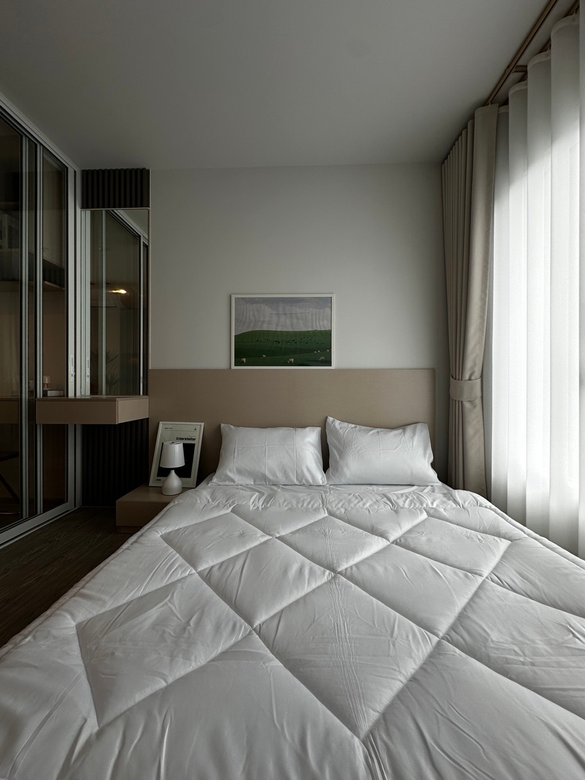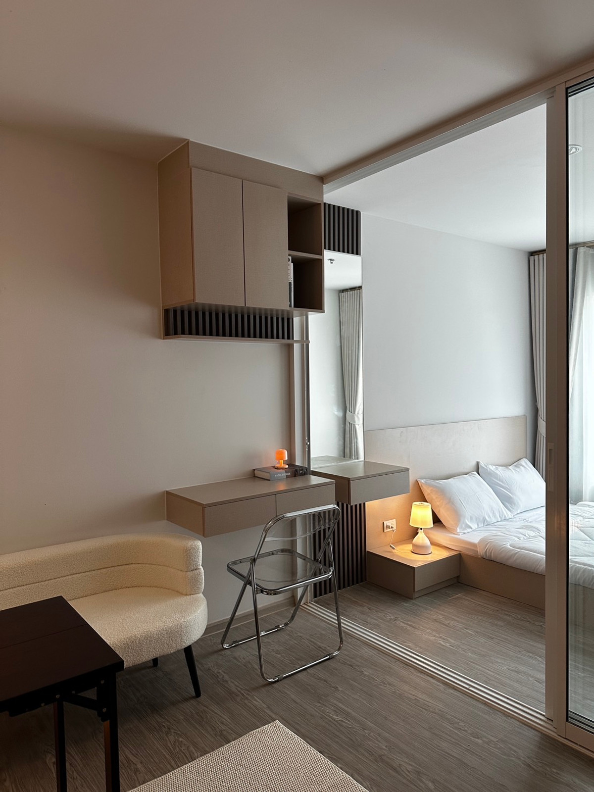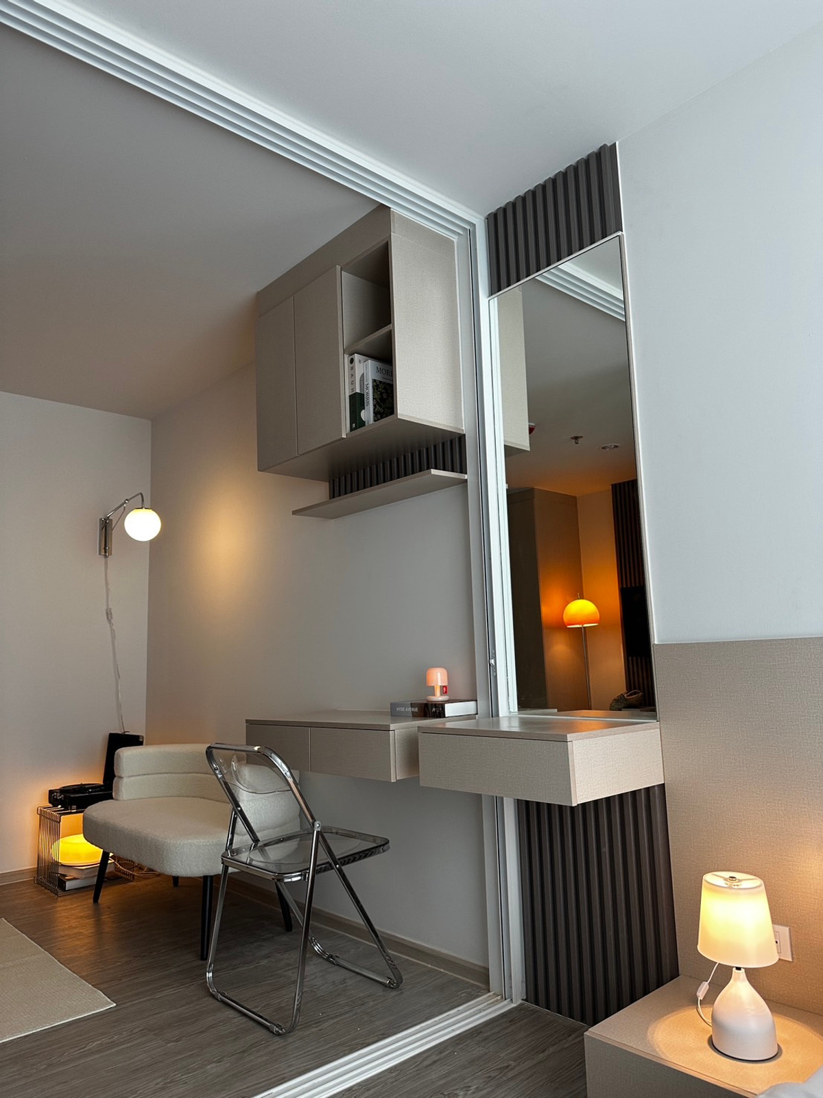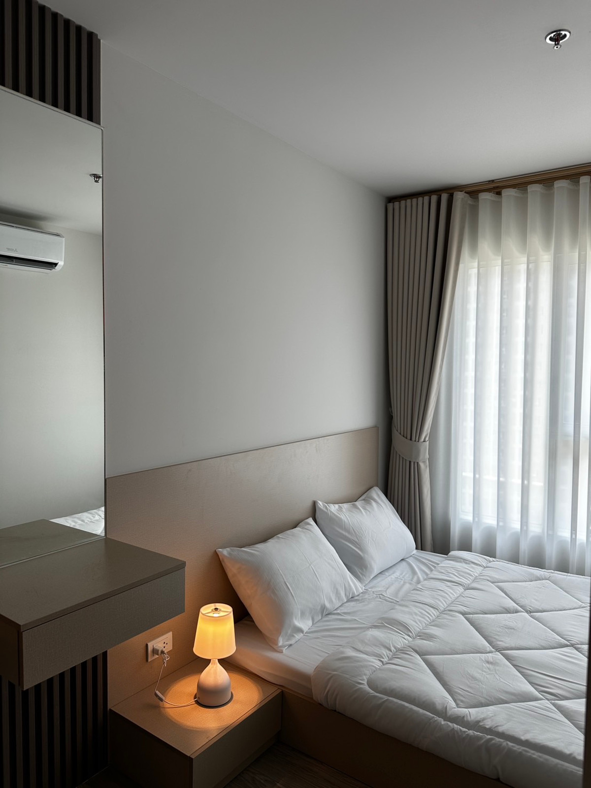 Room 28 sq m, 20th floor, east side, beautiful pool view, no blocking buildings separating the bedrooms, fully furnished, ready to move in 1 Jan. Rent: • 1 year contract: 11,000 baht/month • 2 year contract: negotiable Plenty of freebies! Digital Door Lock Smart TV Toshiba 43" Sliding glass door separating the bedroom/living room • kitchen glass door (Excellent odor protection) • Japanese bed, dressing table Work desk • Minimalist kitchen set, wardrobe, shoe cabinet • The bathroom door knob is super cute Complete condo, ready to move in, very convenient, walk to BTS only 350 m.
