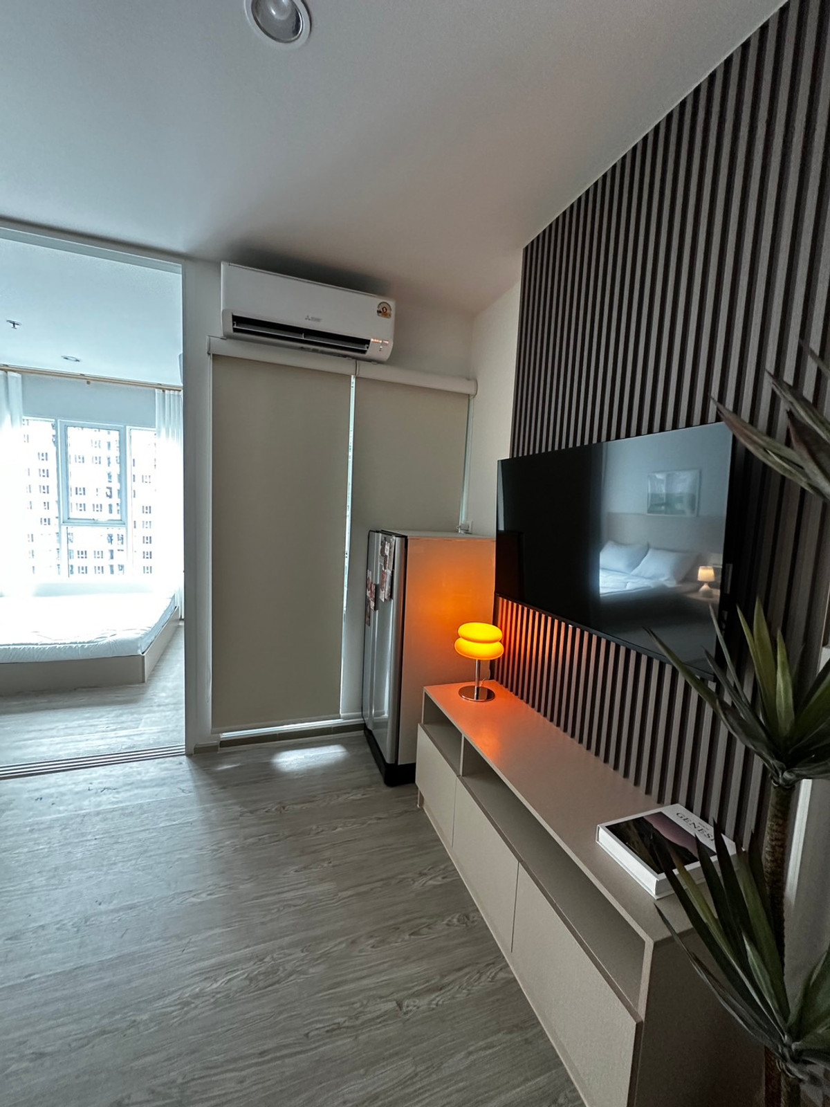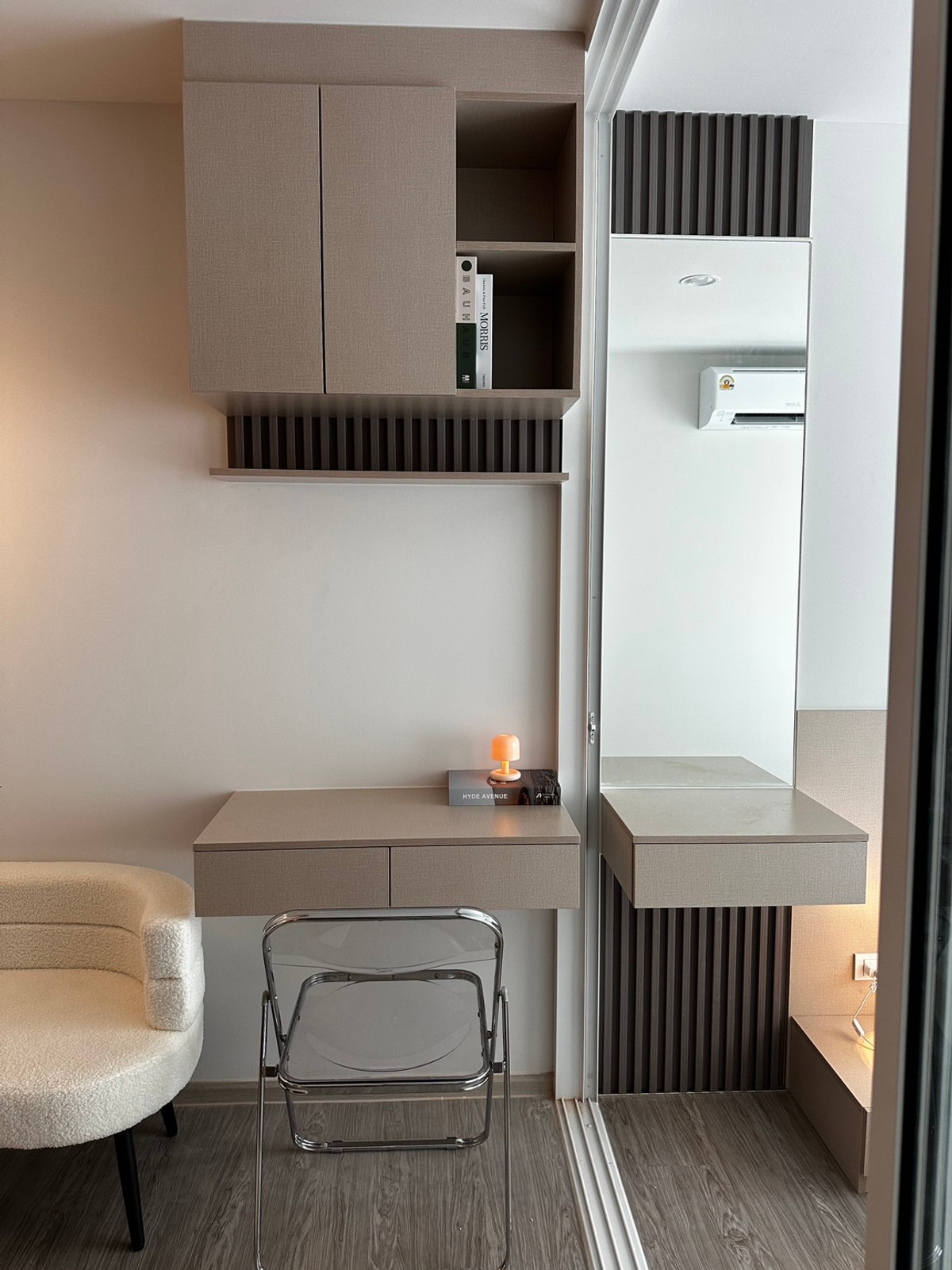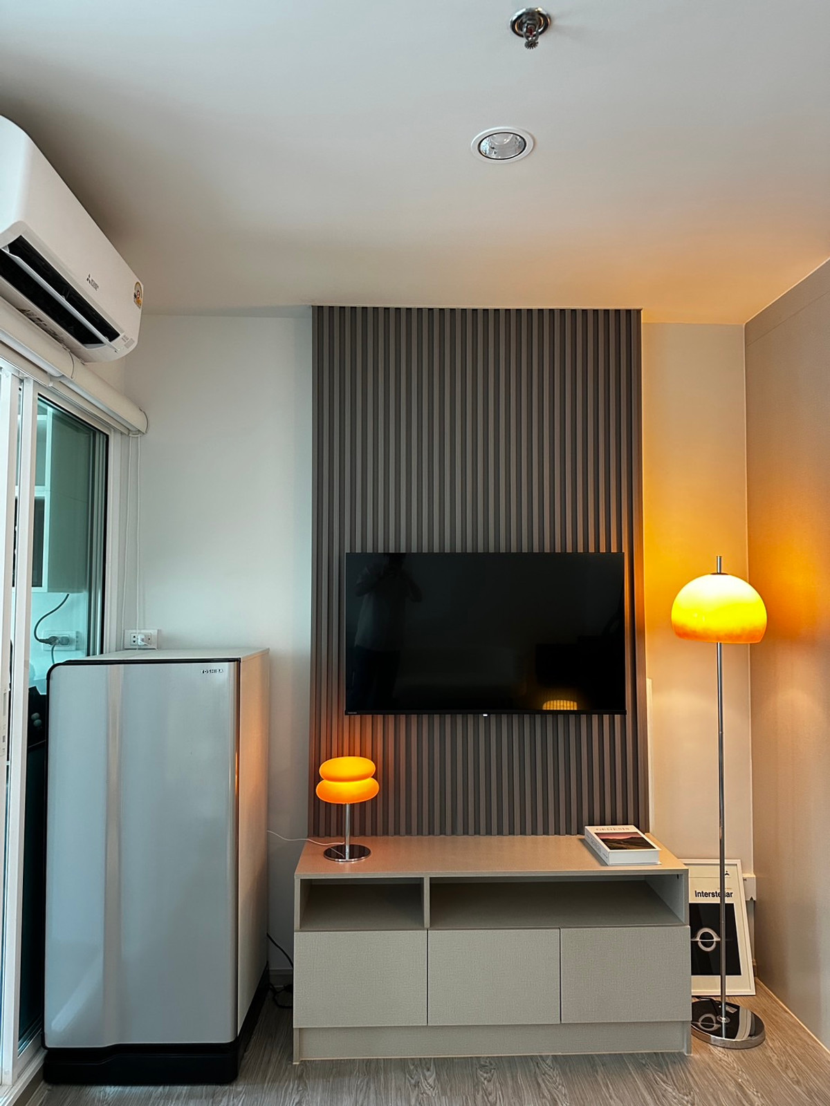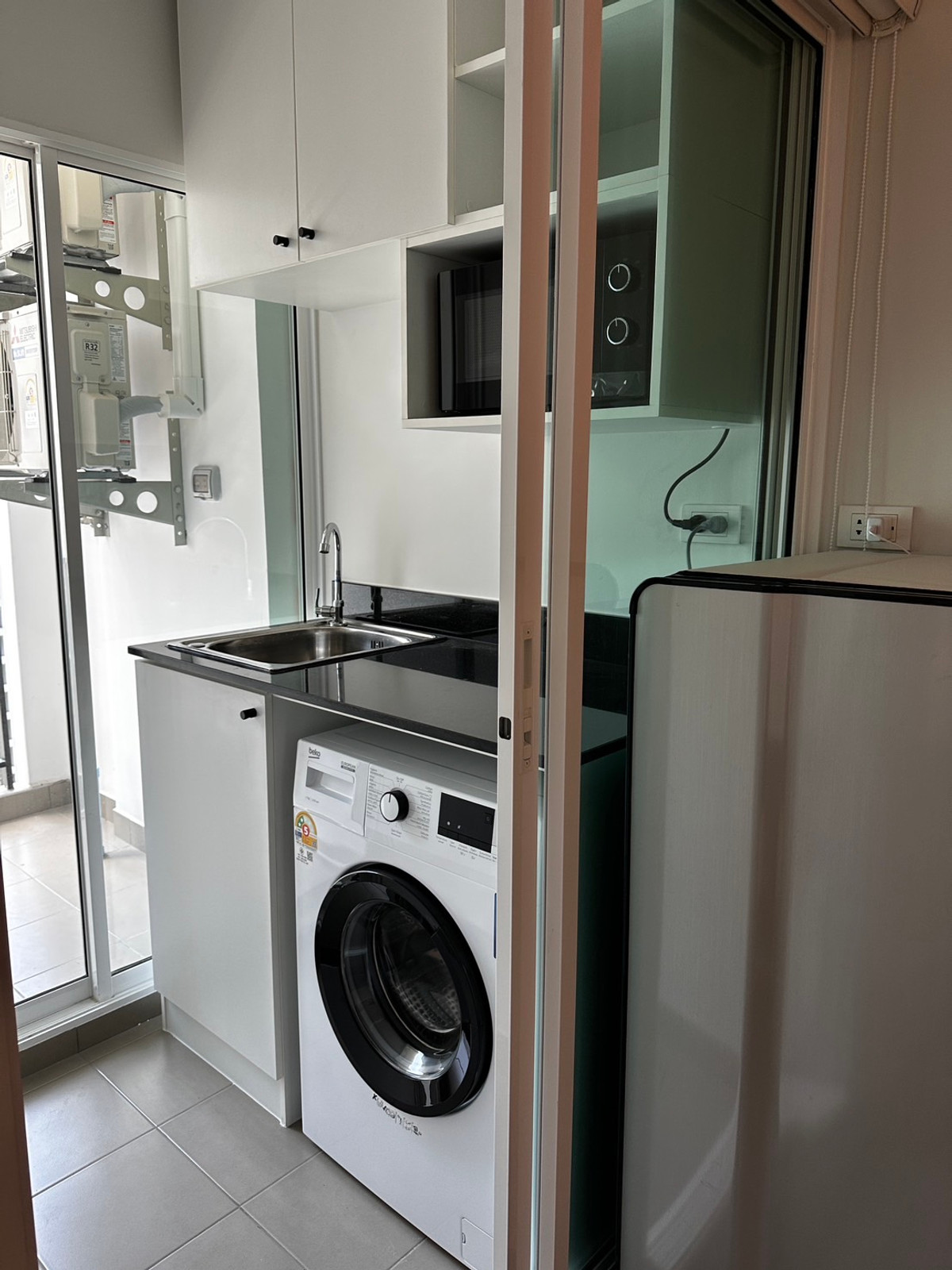 Room 28 sq m, 20th floor, east side, beautiful pool view, no blocking buildings separating the bedrooms, fully furnished, ready to move in 1 Jan. Rent: • 1 year contract: 11,000 baht/month • 2 year contract: negotiable Plenty of freebies! Digital Door Lock Smart TV Toshiba 43" Sliding glass door separating the bedroom/living room • kitchen glass door (Excellent odor protection) • Japanese bed, dressing table Work desk • Minimalist kitchen set, wardrobe, shoe cabinet • The bathroom door knob is super cute Complete condo, ready to move in, very convenient, walk to BTS only 350 m.
