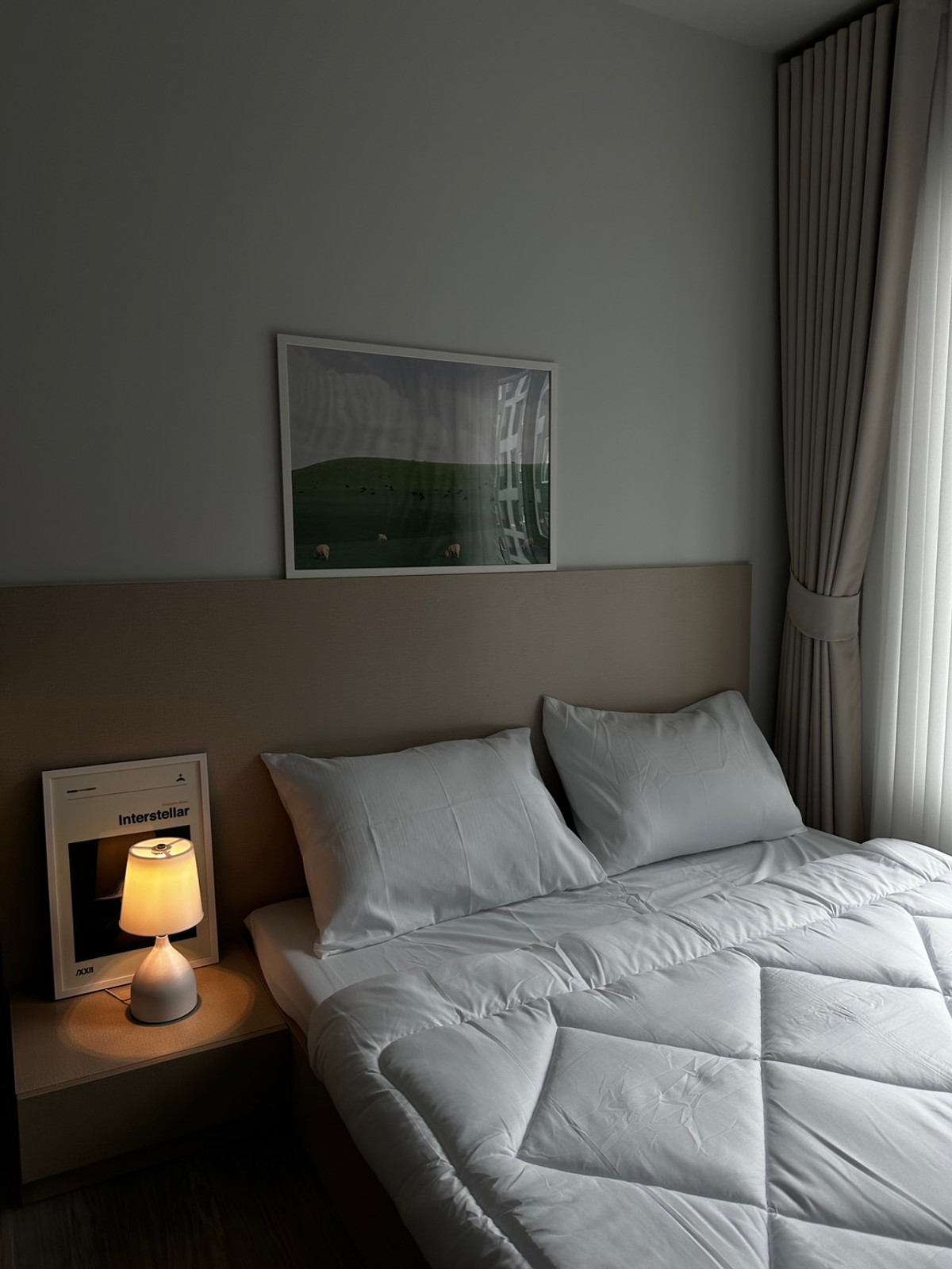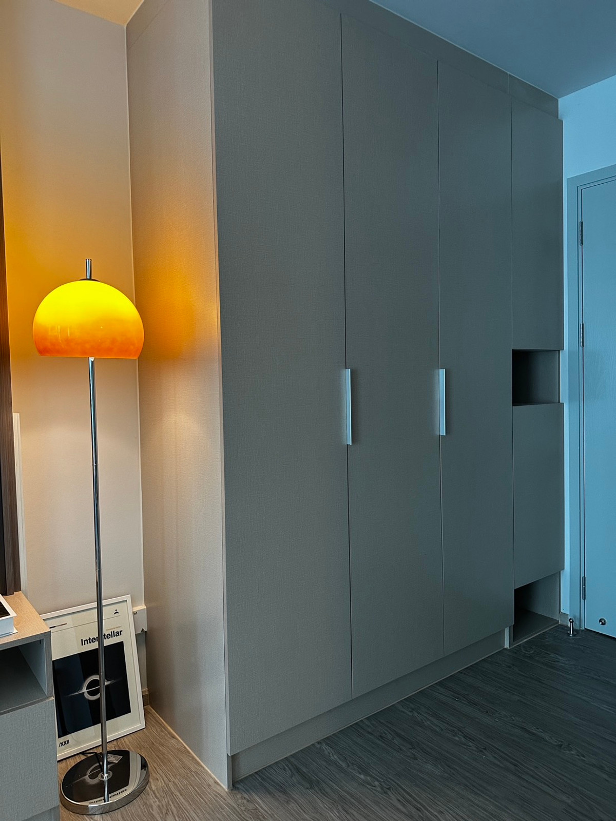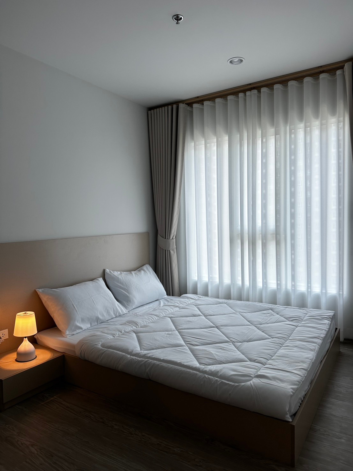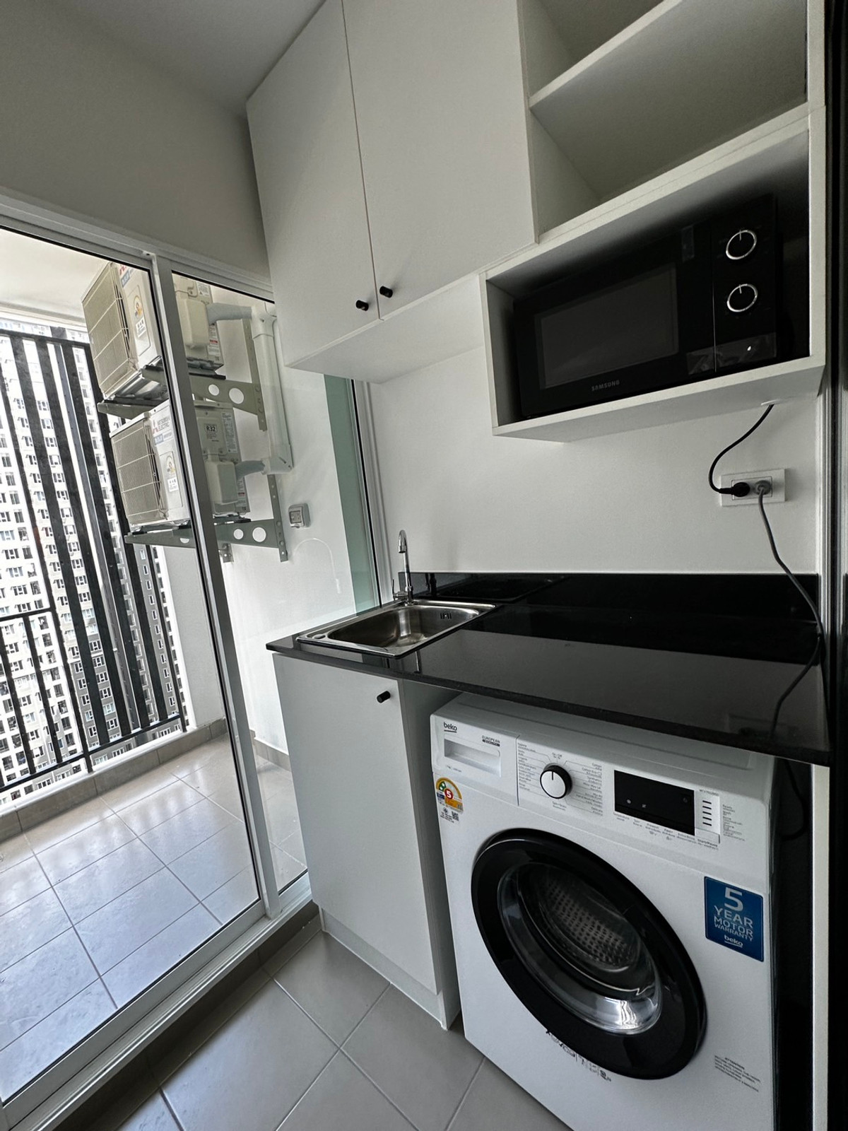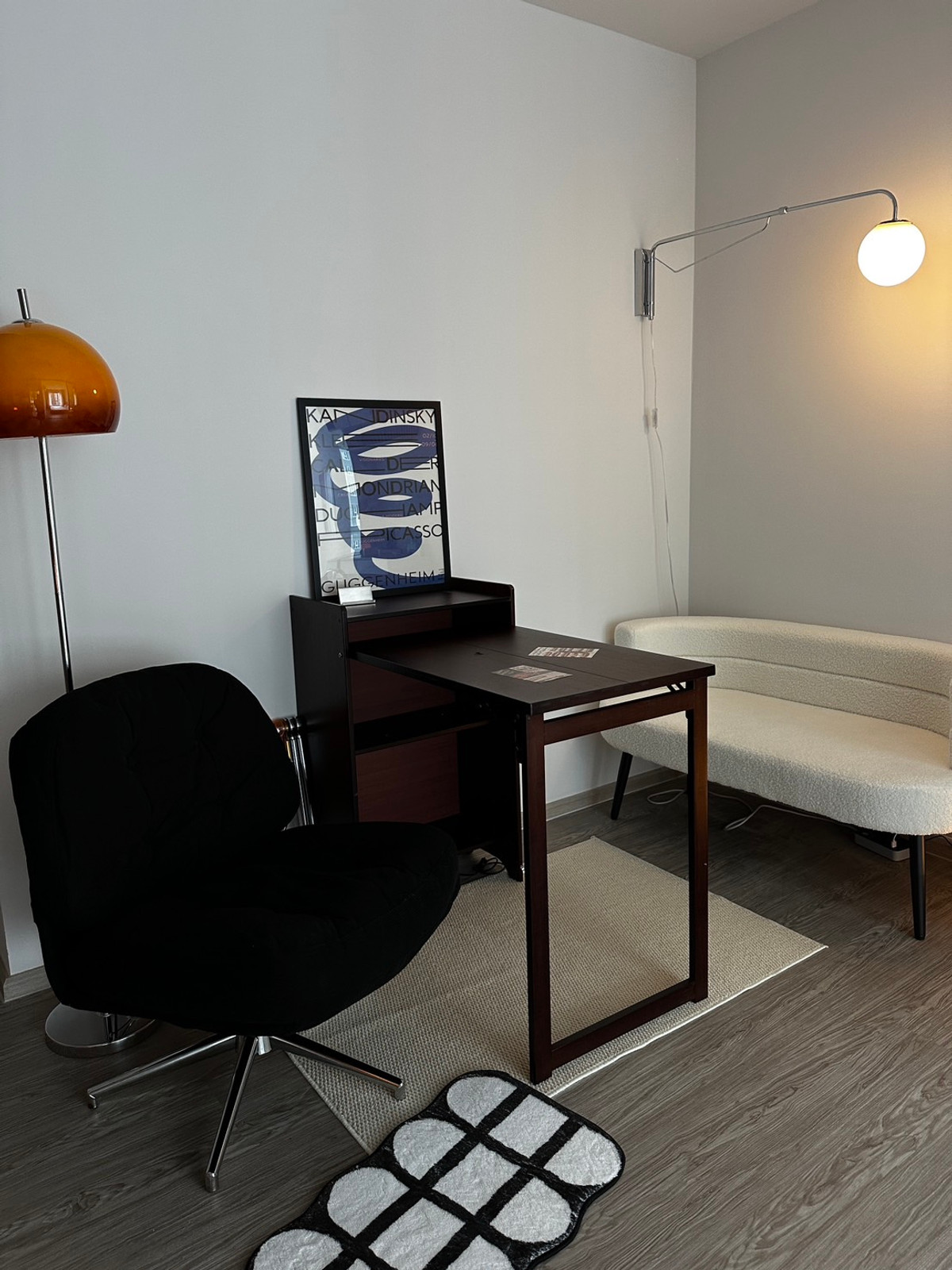 Room 28 sq m, 20th floor, east side, beautiful pool view, no blocking buildings separating the bedrooms, fully furnished, ready to move in 1 Jan. Rent: • 1 year contract: 11,000 baht/month • 2 year contract: negotiable Plenty of freebies! Digital Door Lock Smart TV Toshiba 43" Sliding glass door separating the bedroom/living room • kitchen glass door (Excellent odor protection) • Japanese bed, dressing table Work desk • Minimalist kitchen set, wardrobe, shoe cabinet • The bathroom door knob is super cute Complete condo, ready to move in, very convenient, walk to BTS only 350 m.