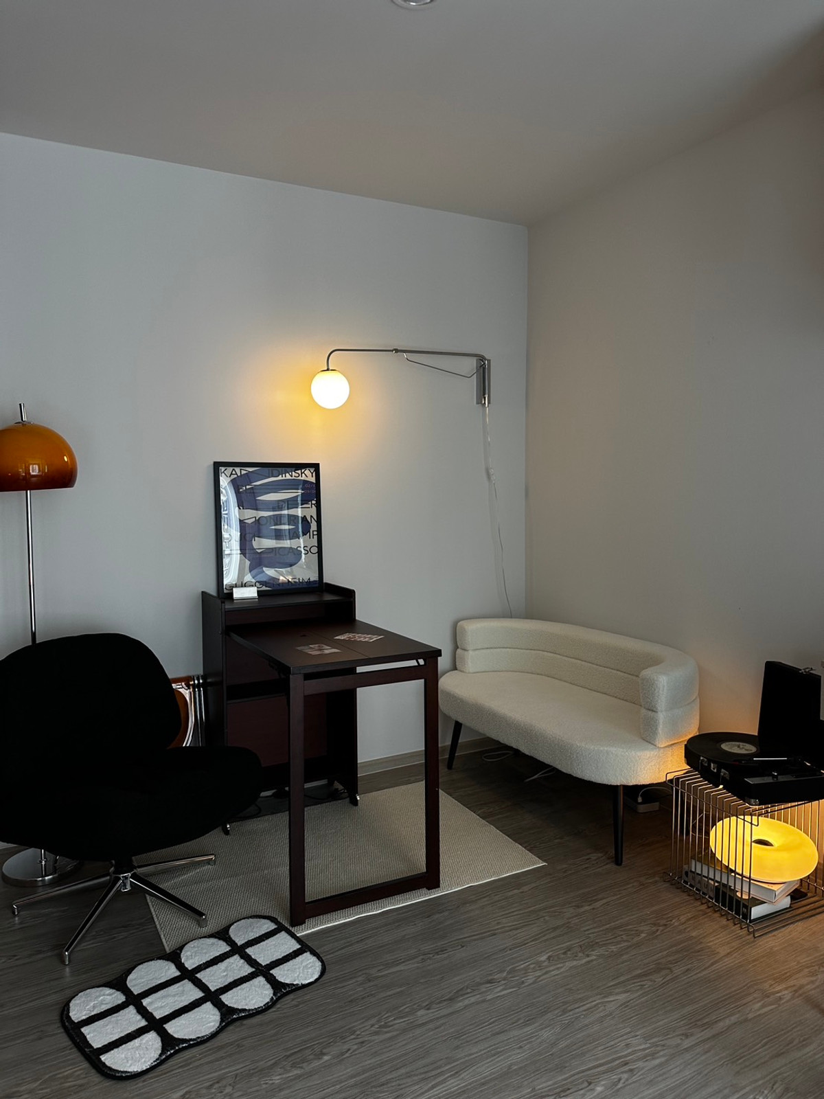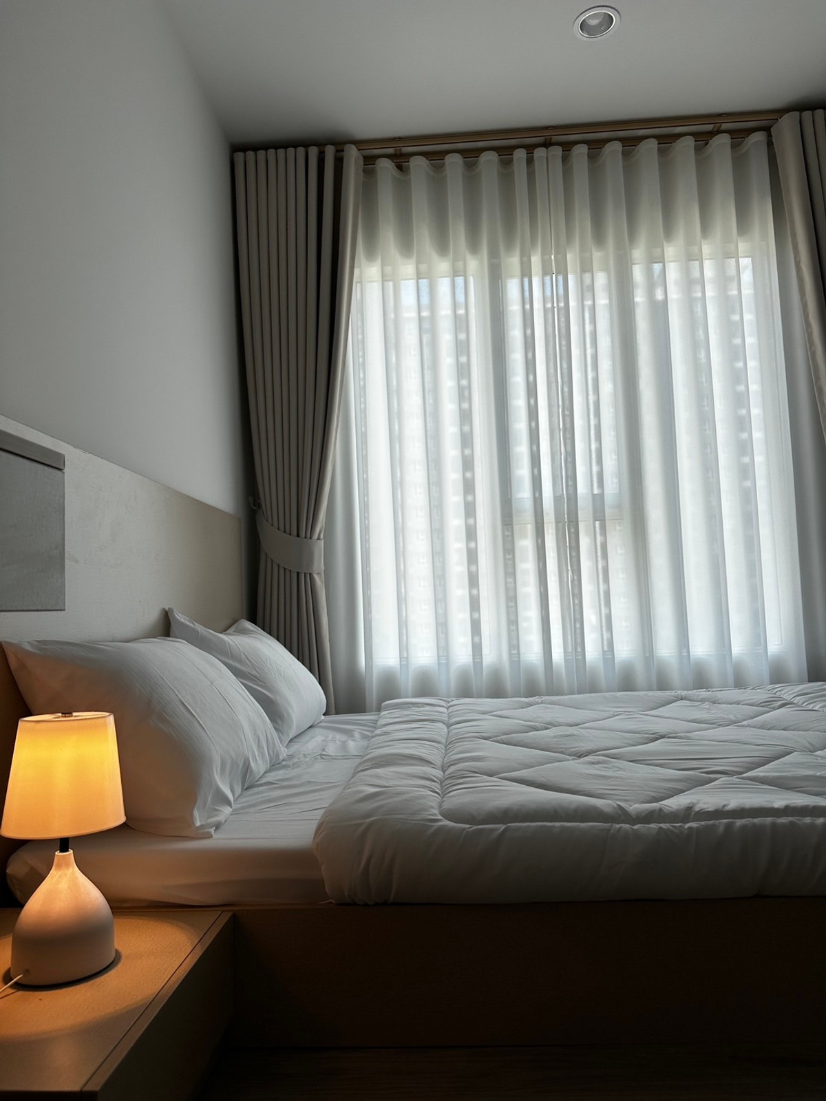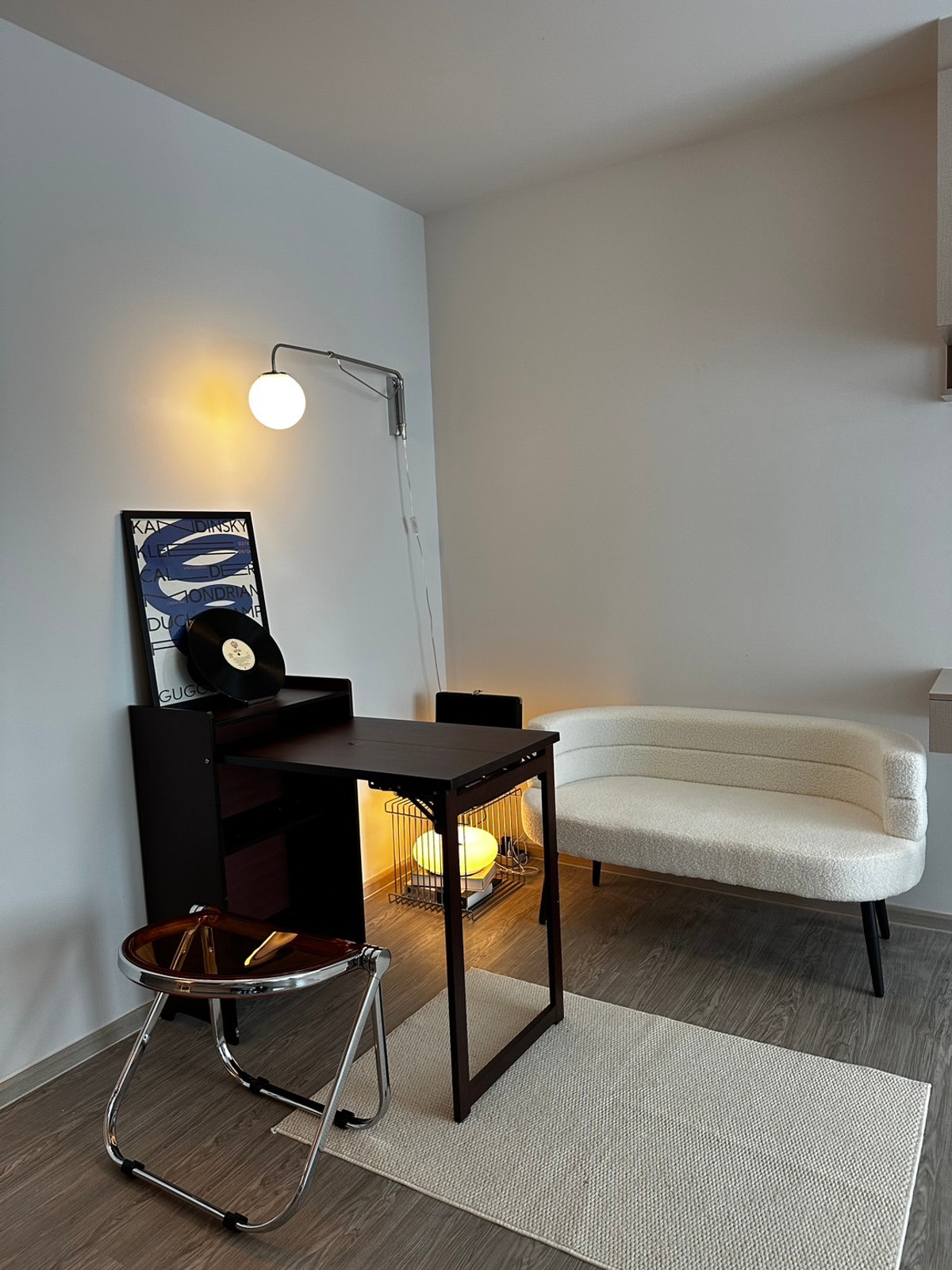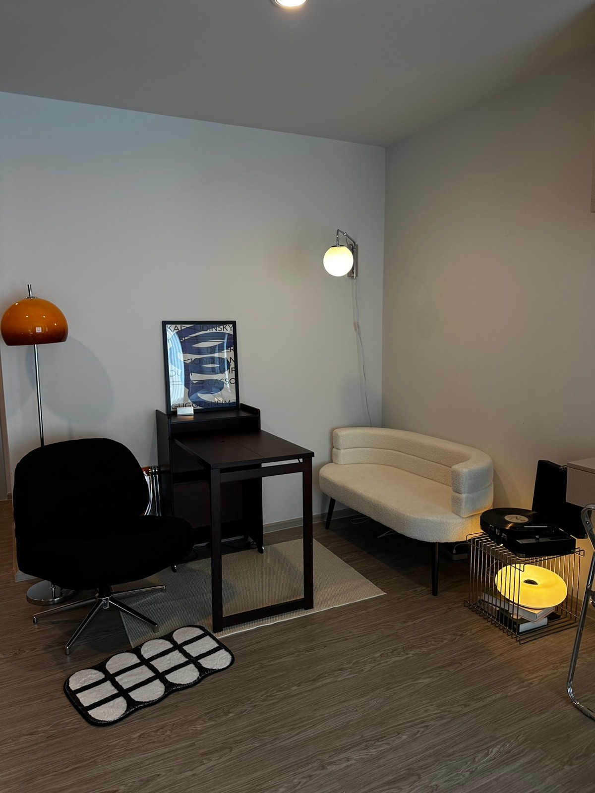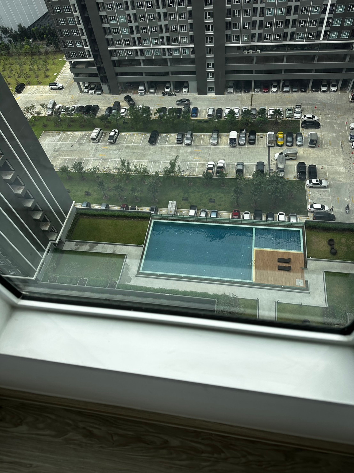 Room 28 sq m, 20th floor, east side, beautiful pool view, no blocking buildings separating the bedrooms, fully furnished, ready to move in 1 Jan. Rent: • 1 year contract: 11,000 baht/month • 2 year contract: negotiable Plenty of freebies! Digital Door Lock Smart TV Toshiba 43" Sliding glass door separating the bedroom/living room • kitchen glass door (Excellent odor protection) • Japanese bed, dressing table Work desk • Minimalist kitchen set, wardrobe, shoe cabinet • The bathroom door knob is super cute Complete condo, ready to move in, very convenient, walk to BTS only 350 m.