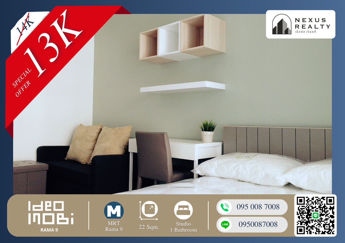 🔥🔥 Ready to move in!! Beautiful room, fully furnished!! Best price!! Very quick to rent!! Ideo Mobi Rama 9 — Prime location at Rama 9 Intersection, next to MRT Rama 9 & Central Rama 9! 🔥🔥 Best price, fast-moving unit! Ideo Mobi Rama 9 Type: Studio Size: 22 sqm. Price: 13,000 Baht/month #NoCoAgent# For more information, please contact me (Anytime) Tel: Contact number Line: https://line.me/ti/p/AnHTAfX0zZ Line: Contact number