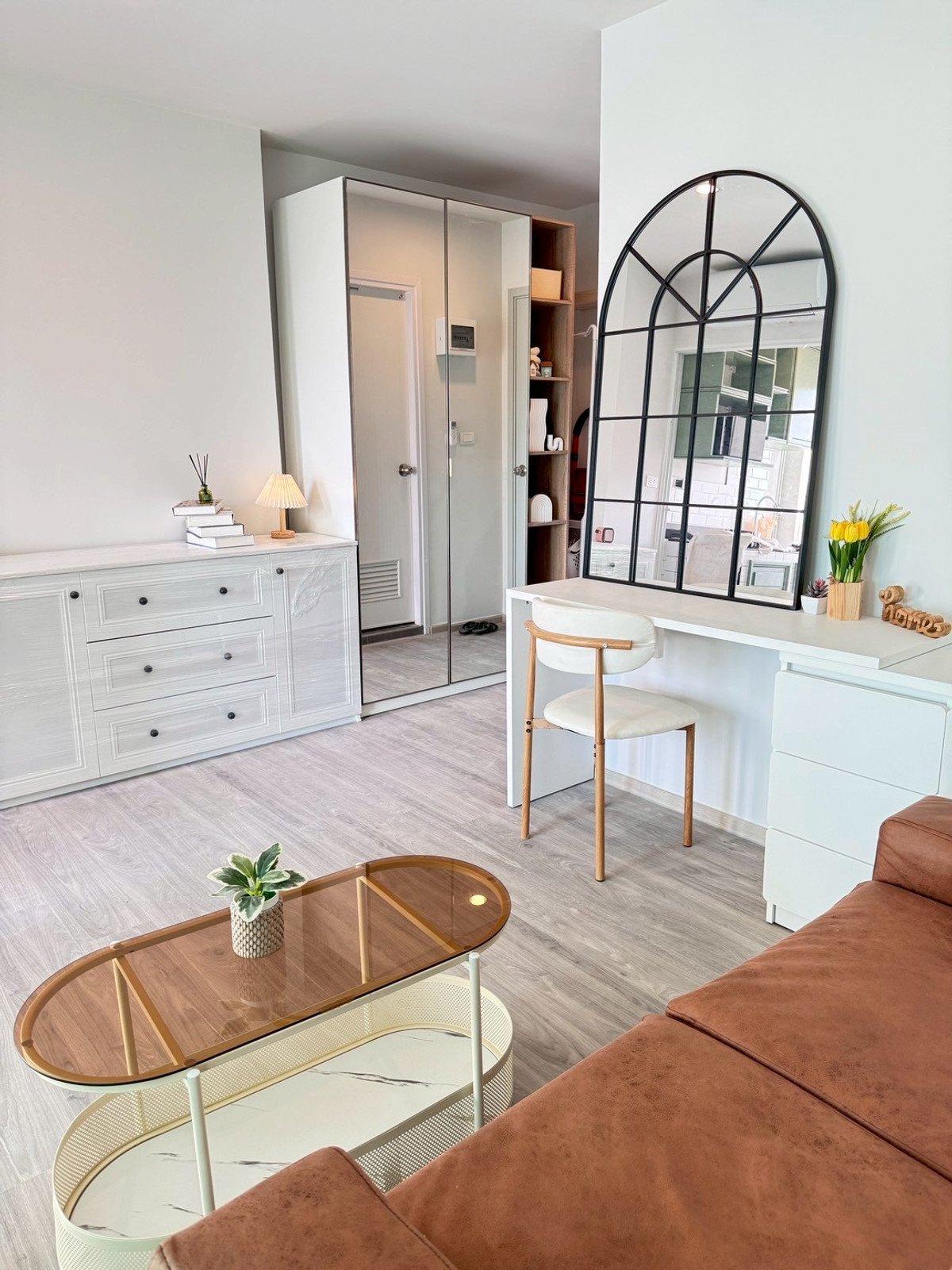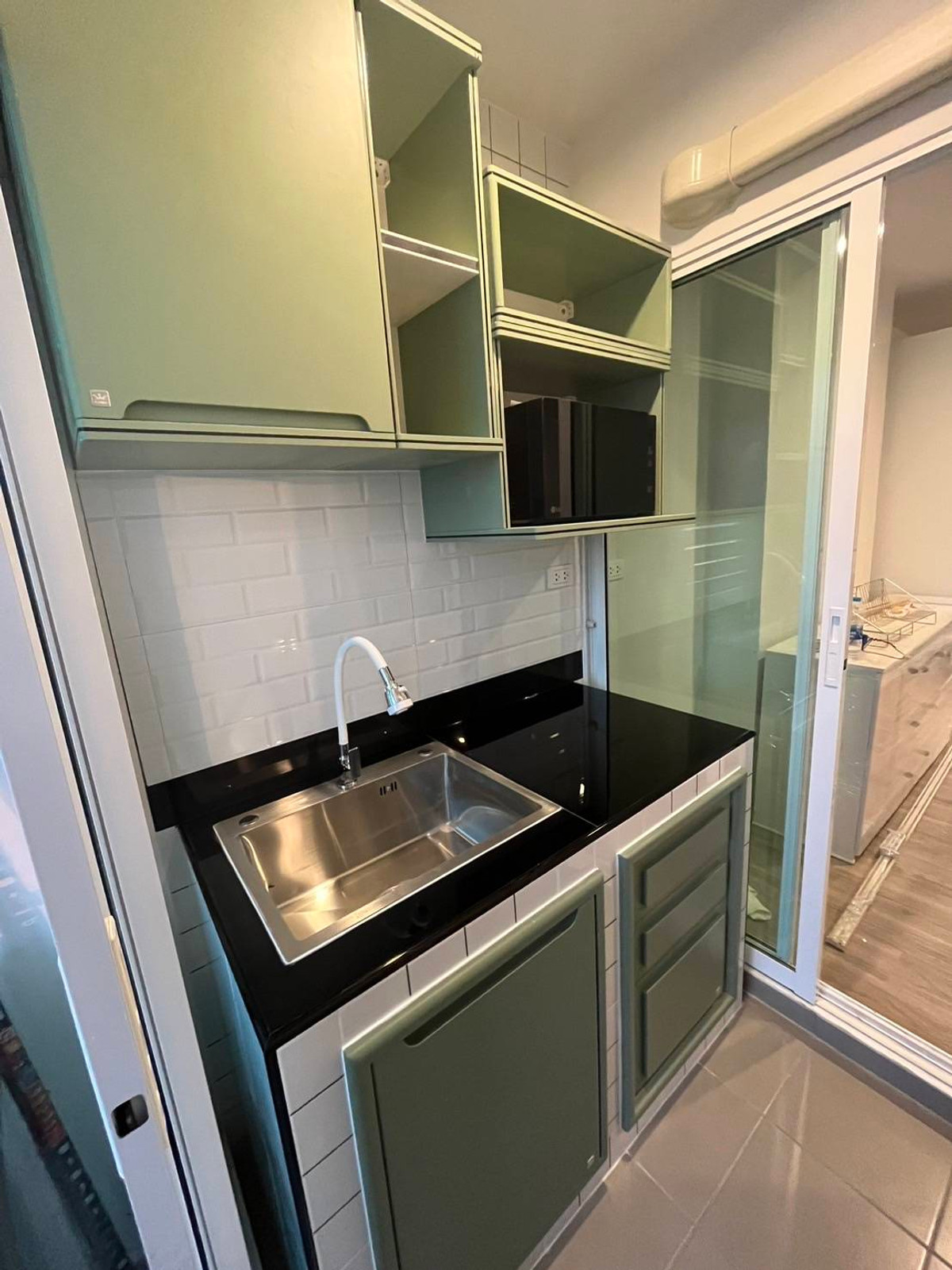 Regent Home Bangna, new room, corner room, beautifully decorated, digital key, front-loading washing machine. 6 mm glass room divider Pocket spring mattress SHOWERbathing