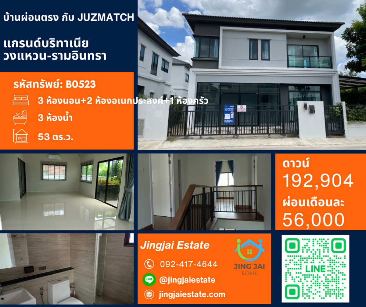 แกรนด์บริทาเนีย วงแหวน-รามอินทรา บ้านเดี่ยว 2 ชั้น หลังสุดท้ายของล็อค ส่วนตัวสุดๆ บ้านผ่อนตรง ที่จริงใจ โซนรามอินทรา — แค่จ่ายดาวน์ เข้าอยู่ได้เลย ไม่ต้องง้อแบงก์! บ้านพร้อมอยู่จาก JUZMATCH ทำเลดีมาก 🚇 ใกล้ทางด่วน เข้าออกได้หลายทาง ✅ เพียง "มีเงินดาวน์" ก็หิ้วกระเป๋าเข้าอยู่ได้เลย ✅ อนุมัติง่าย ไม่เช็กแบล็กลิสต์ ฟรีแลนซ์ / ขายของออนไลน์ / เจ้าของกิจการ ทำงานต่างประเทศ ก็กู้ได้ ✅ สัญญา 3 ปี โปะได้ หากยังไม่พร้อมปิด ต่อสัญญาได้ หรือ ดันออกกู้แบงก์ ✅ เราคือ JUZMATCH Certified Agent ของแท้ ✅ ทุกขั้นตอนผ่านระบบออนไลน์ ปลอดภัย 100% ไม่รับเงินเข้าบัญชีส่วนตัว 📍 รหัสทรัพย์ B0523 บ้านเดี่ยว 3 ห้องนอน | 3 ห้องน้ำ | 2 ห้องอเนกประสงค์ | ที่ดิน 53 ตร.วา | จอดรถหน้าบ้าน 2 คัน ดาวน์เพียง(ค่าทำสัญญา) 192,904 บาท • ผ่อนเดือนละ 56,000 บาท ราคาหน้าสัญญา 9,649,096 บาท ‼️ โปรดระวังมิจฉาชีพ ติดต่อกับ JUZMATCH Certified Agent เท่านั้น!! JUZMATCH Certified Agent : A Contact number 💬 สนใจนัดดูบ้าน / ปรึกษาฟรี ไม่มีค่าใช้จ่าย LINE : @jingjaiestate ➝ https://lin.ee/zGsJNkC โทร. Contact number https://www.jingjaiestate.com https://www.tiktok.com/@byjingjaiestate https://www.instagram.com/jingjaiestate/ #บ้านผ่อนตรงเจ้าของ #กู้บ้านไม่เช็คแบล็คลิส #กู้บ้านไม่เช็คบูโร #jingjaiestate #แกรนด์บิทาเนียวงแหวนรามอินทรา #ซื้อบ้านมือสอง