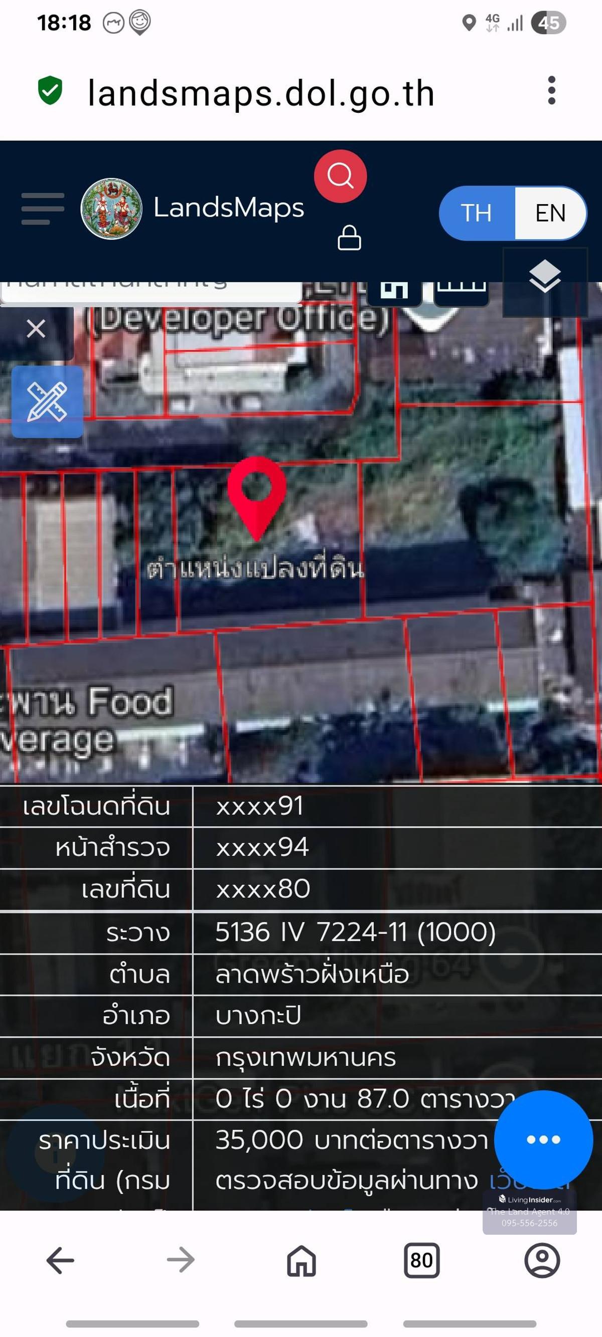 Land for sale, Soi Lat Phrao 64 #Ratchadaphisek , area 221 sq m. #city center price 18.50 million baht #cheap price or 83,710.40 baht per square wa located #city center, Soi Lat Phrao 64, intersection 7 (Ketnuti), Wang Thonglang Subdistrict. Wang Thonglang District Bangkok Suitable for building a house, residence #Quiet atmosphere #Water does not flood. The roads in the alley have already been improved. Only 1.2 Km. from the MRT Yellow Line station. 450 meters from Lat Phrao Road. Can travel in and out in many ways, such as Soi Lat Phrao 80, Lat Phrao Road, Sutthisan Winitchai Road, Rama 9 Road, etc. Convenient travel. Ownership transfer fee is paid in half Income tax and stamp duty are responsible for the seller Location of this plot of land https://maps.app.goo.gl/55vE4ZkGC2Q7VLAT9 Interested Contact number or inbox id line : chaiya.silom www.thelandagent40.com