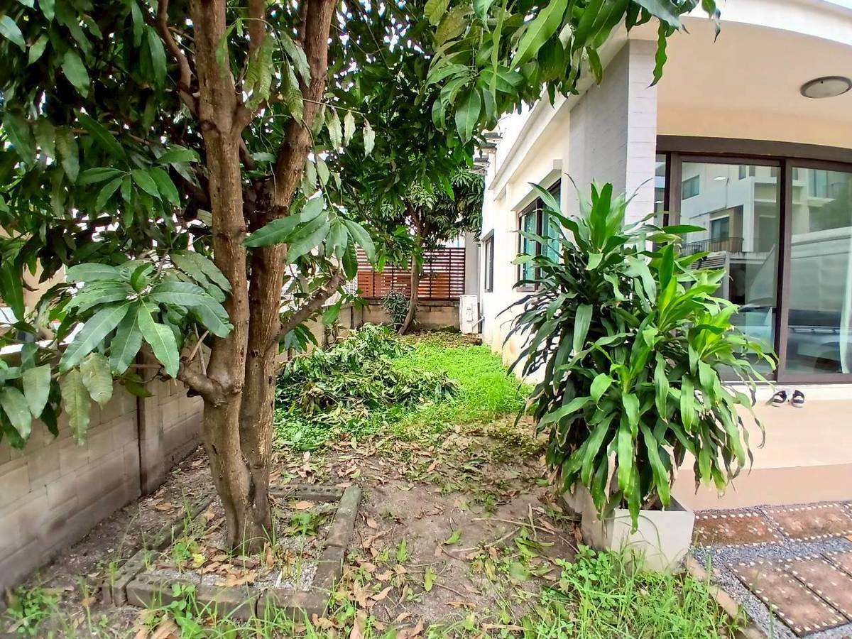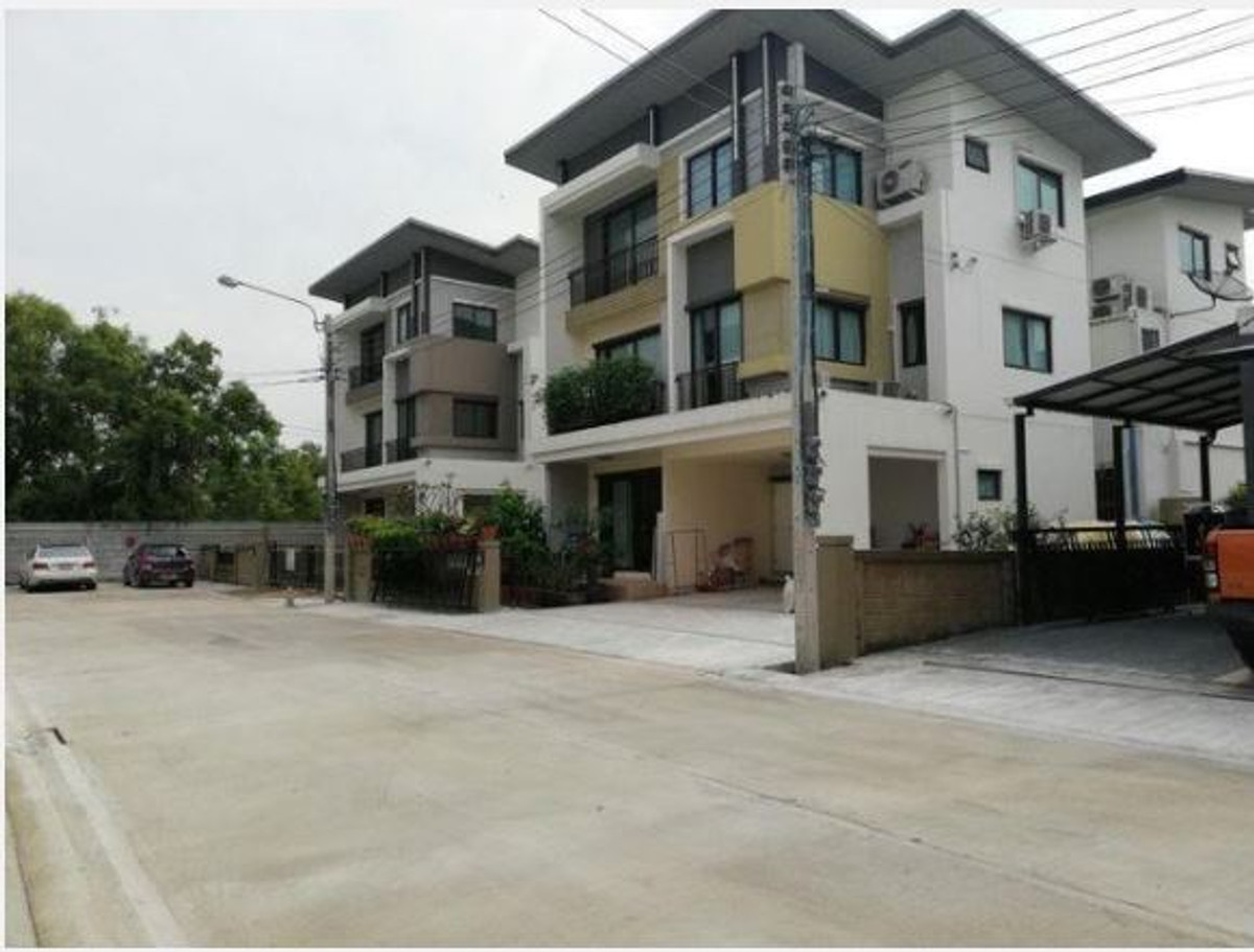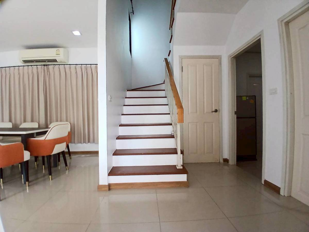3 storey house for rent Golden Place Village, Sukhapiban 5 , area 55 sq wa, total usable area 228 sq m. 5 bedrooms, 4 bathrooms, 1 rest room, 4 parking spaces, garden around the house There are air co