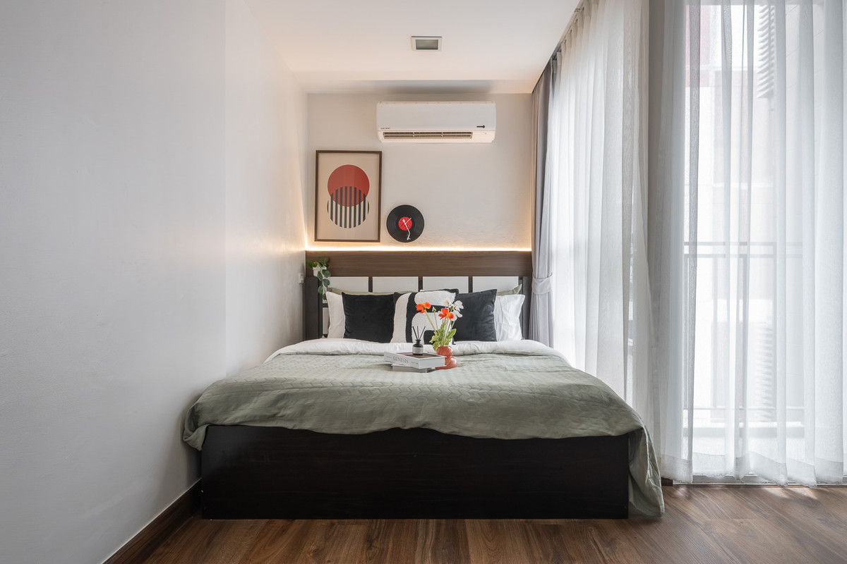 D Ratchada 19, large room 44 sq m., near MRT Ratchadaphisek, only 200 m., decorated Mid-Century, ready to move in.
