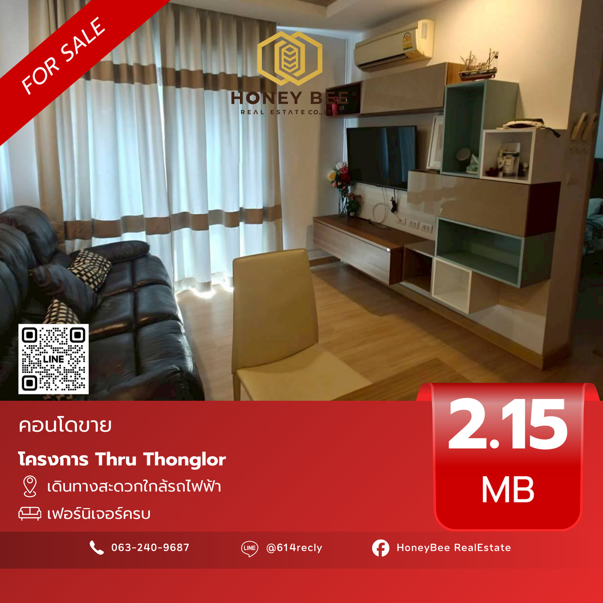 ❗️Thru Thonglor แต่งครบ สภาพดีมาก ห้องสวย 🔥 📍รหัส BH01 ✨ขายเพียง 2.15 ล้านบาท ☀️รายละเอียด - ขนาด 31.78 ตร.ม. - ชั้น 6 - 1 ห้องนอน - 1 ห้องน้ำ 📲 สนใจนัดชมคอนโด 😊 ติดต่อ แอดมิน 📞 : Contact number 👉🏻 ลิงค์ Line : https://page.line.me/Honeybeee ❇️ Line id : @Honeybeee (มี e 3 ตัว) 🐝 Honey Bee Real Estate 🍯