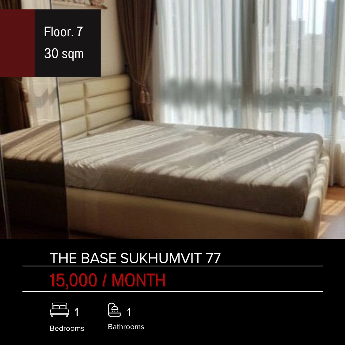 For Rent Ready to move Condo : The base Sukhumvit 77 Size : 30 SQM Floor. 7 Type: 1 bedroom 1 bathroom Rent Price : 15,000 Baht Tel. Contact number ( Anda ) WhatsApp Contact number (Anda) Line @285gshuc #TBS777
