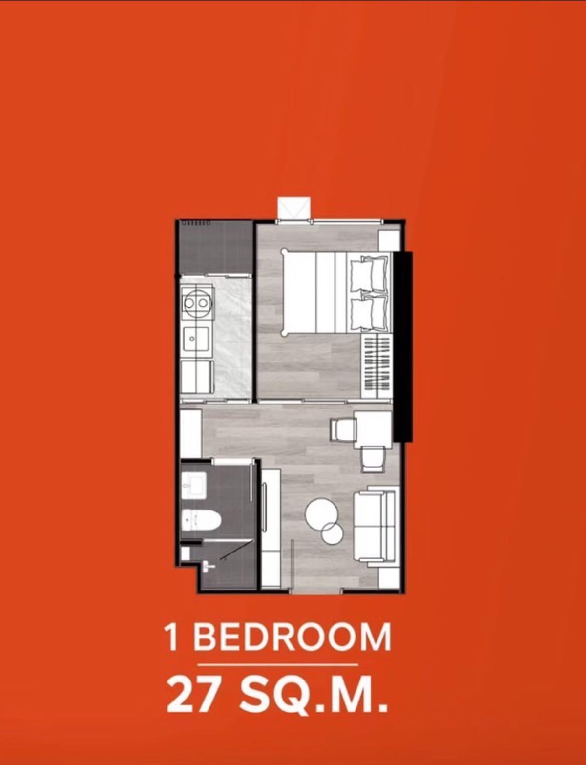 🔥Leaked room, 5th floor, hot deal promotion, easy installments directly at the bank. Cheap installments starting at 6,XXX baht/month 🌟The room layout is nice and perfect, 1 Bedroom smart kitchen, 27 sq m., kitchen closed to the balcony🍳