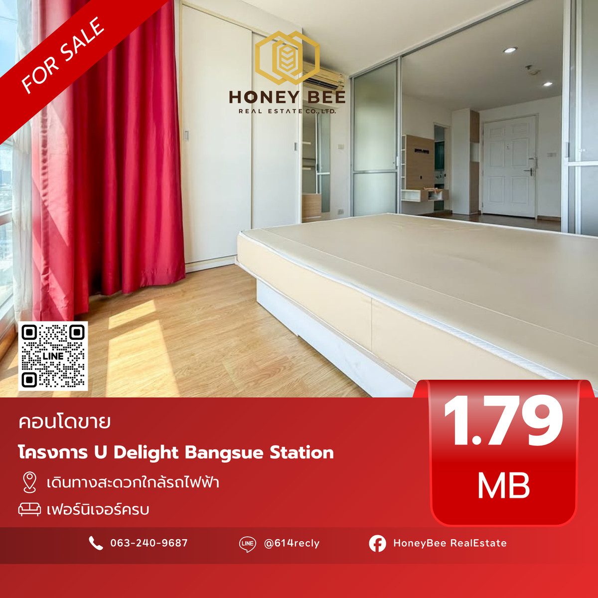 ‼️ U Delight Bangsue Station แต่งครบ สภาพดีมาก ห้องสวย 🔥 📍รหัส BH01 ✨ขายเพียง 1.79 ล้านบาท ☀️รายละเอียด - ขนาด 36 ตร.ม. - ชั้น 17 - 1 ห้องนอน - 1 ห้องน้ำ 📲 สนใจนัดชมคอนโด 😊 ติดต่อ แอดมิน 📞 : Contact number 👉🏻 ลิงค์ Line : https://page.line.me/Honeybeee ❇️ Line id : @Honeybeee (มี e 3 ตัว) 🐝 Honey Bee Real Estate 🍯