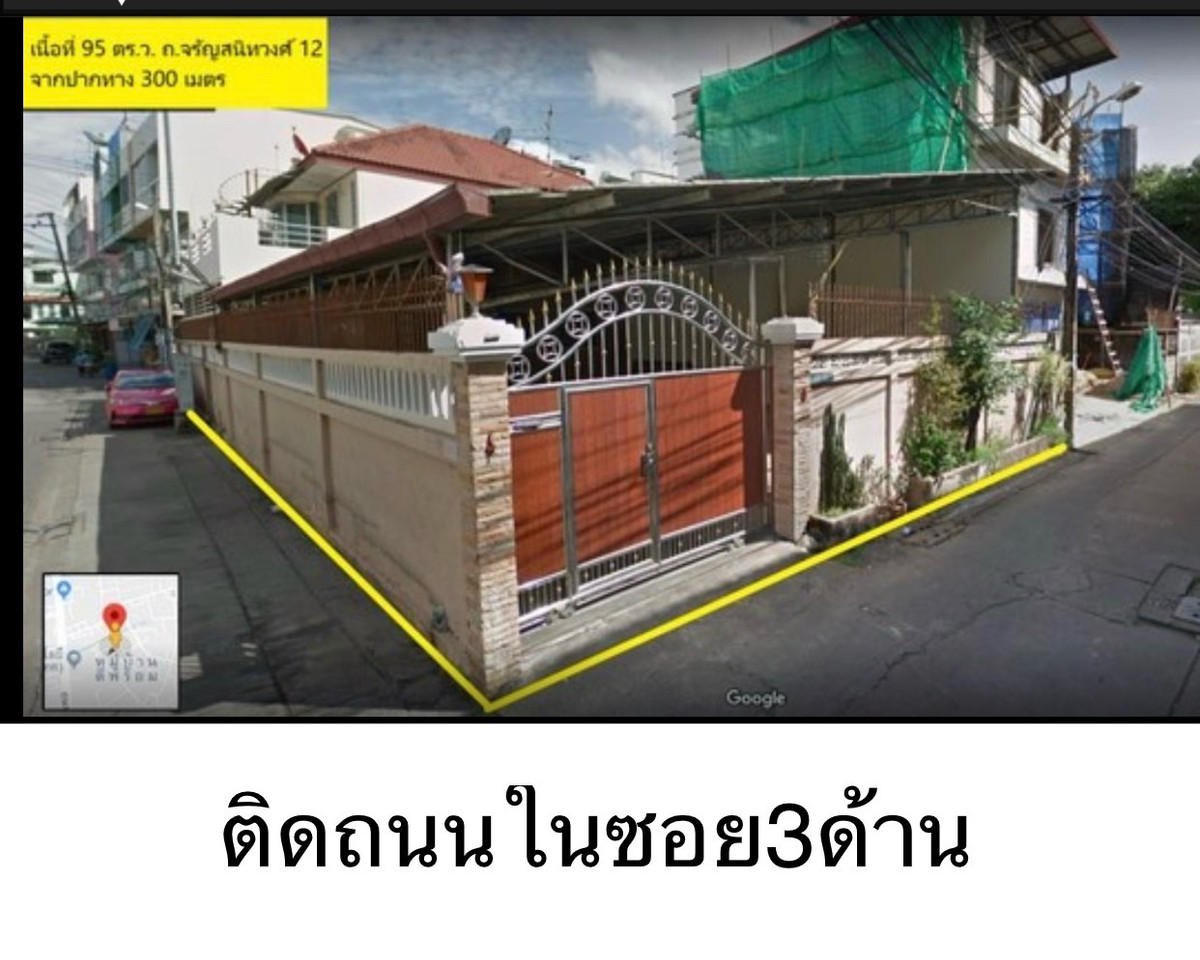 👍👍House for sale with land near the BTS , total area 95 sq m. Charansanitwong 12 , gate facing north , front door facing east , the house is next to the road in a sub-alley , cars can pass each other.