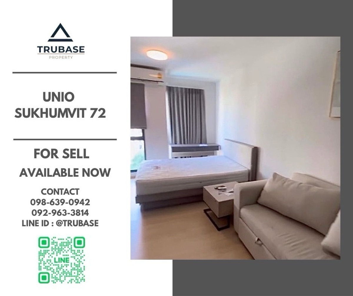 Asset code: TBEVCC5 Project: Unio sukhumvit 72 near BTS Bearing, near the expressway entrance and exit point. Sanphawut/Bangna, near markets and restaurants in Soi Sukhumvit 72, large common area It is a condo that provides good value. Both live in and invest for rent Type: 1 bedroom | 1 bathroom Size: 27.56 sq m. Floor: 6 Building: A 🔥Special price only: 1,500,000 baht🔥 Ask for more information | Make an appointment to see the room ❇️Contact us ❇️📱 Contact number / Contact number 💬 Line Official ID : @trubase 🔗 Line Official Link : https://line.me/R/home/profile?id=@trubase