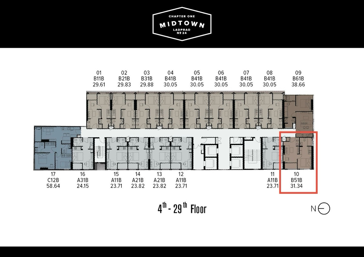 ขายด่วน! Chapter One Midtown Ladprao 24 – 1 ห้องนอน 31.65 ตร.ม. ชั้น 23 ห้องมุม
