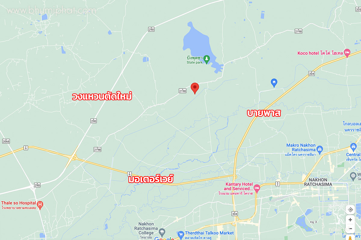 Title deed land for sale, area 1-2-63 rai in Phutsa Subdistrict, Mueang Nakhon Ratchasima District. On the land there are large trees. The atmosphere is shady and quiet. Located in a secluded community area. The front of the land is next to the road. There is access to electricity and running water. Can travel in and out easily because there are many connecting roads. Located just off Bas Pass Road. New Korat ring road and motorway It is a high area and does not flood. Suitable for building a garden house or building a dormitory or room for rent. Location >> 6.6 km from Thai Watsadu, Khon Kaen Bypass. >> 7.8 km from the motorway exit point between Khok Sung - Kham Thale So. >> 5.9 km from the new bypass, line 290, Kham Ta Seo. Coordinates: Ban Noi-Bukrathin, Phutsa Subdistrict, Mueang Nakhon Ratchasima District, GPS 15.025642, 102.031388 Call Contact number