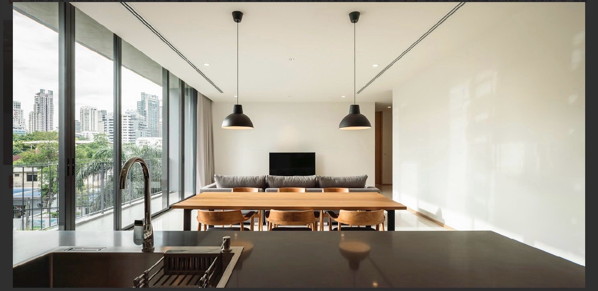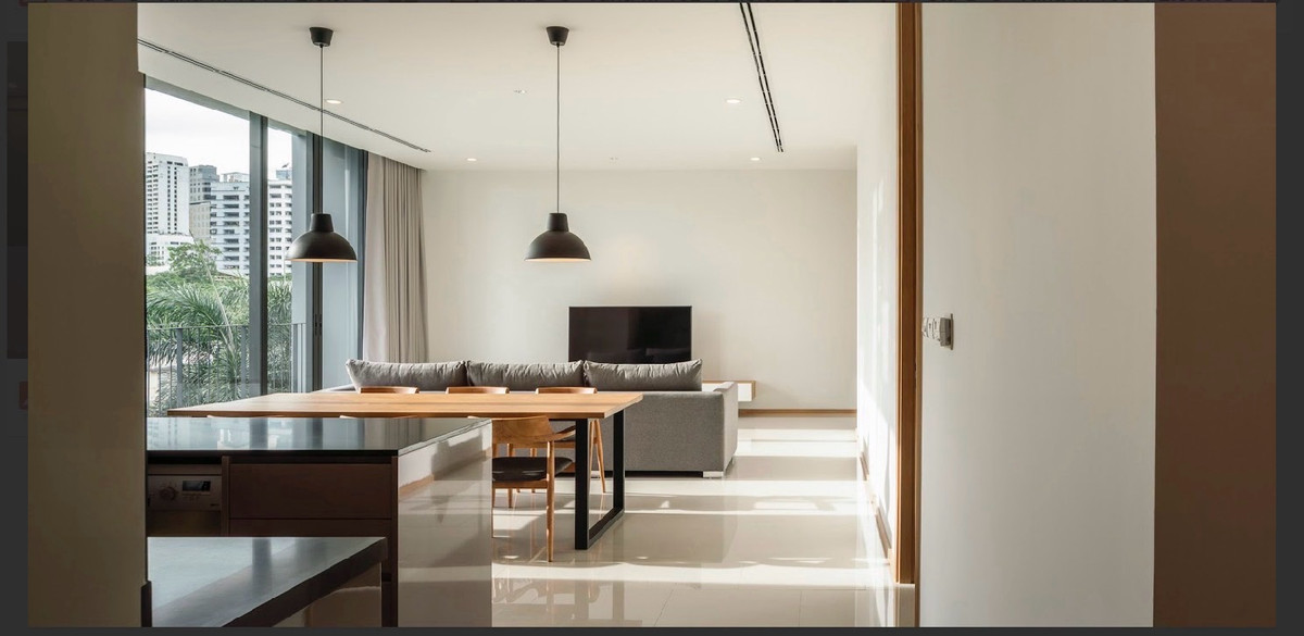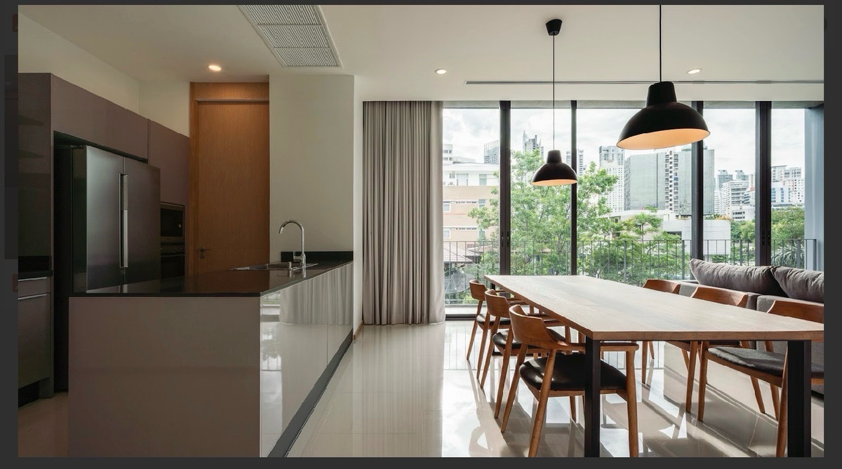 For rent Vana Residences Sukhumvit26 Unit 3B Available: 5th Janaury 2026 3 Bedroom 4 Bathroom 205 sqm. Apartment 155,000 THB/month - 3-meter high ceiling - 1 Working room - 2 Kitchens - Separate maid