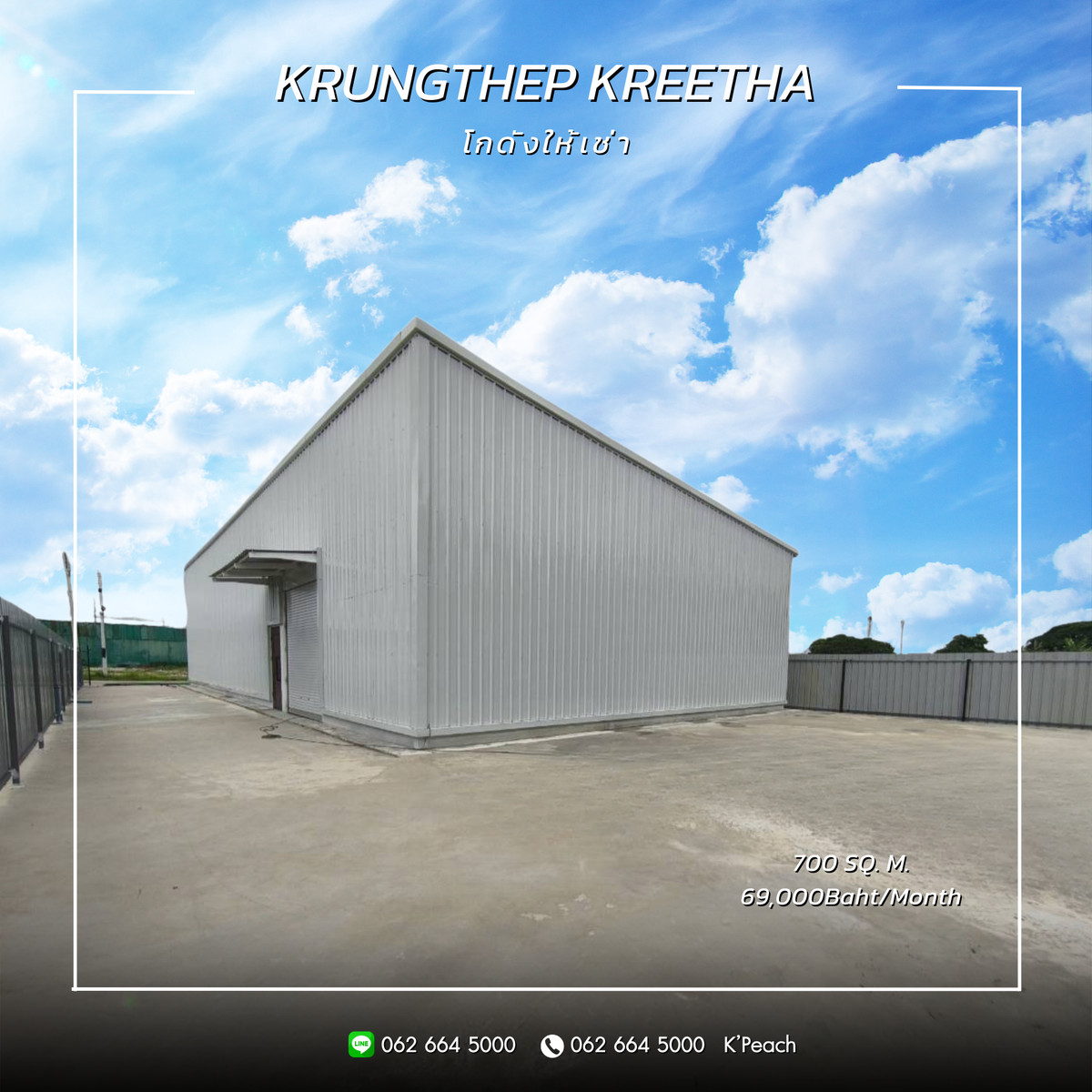 Warehouse for rent 700 sq m 💥 Krungthep Kreetha, Thap Chang, Lat Krabang, near Suvarnabhumi Airport. Near the motorway 📍 suitable for a distribution center Warehouse, product stock, studio, office, store, online business, transportation business, e-commerce business Event organizing business / Warehouse/ Fulfillment / Studio / Store / Storage / Office / Drop shipping / Logistics / E-commerce / Event Organizer 💫 .Details🌈 - Total area 700 sq m - Warehouse area 288 sq m - Width 12 meters, depth 24 meters, height 5.5 meters - 2 en-suite bathrooms - Load-bearing floor 2 tons/sq m - Warehouse entrance doors on 2 sides (3*3 meters) - Parking for 7-10 cars🚗 - 8 meter wide road - easy entry and exit for trailers🚛 . Connects many roads🛣️ Krungthep Kreetha Road, Srinakarin Road .Rental conditions🌈 - Rental price 69,000 baht/month - 3 months security deposit, 1 month in advance - 3 year contract .Rural Development Warehouse Krungthep Kreetha Srinakarin-Romklao - size 108 sq m. 30,000 baht/month (has an office) - Size 130 sq m. 38,000 baht/month (with office) - Land size 700 sq m. 69,000 baht/month - Size 800 sq m. 90,000 baht/month - Size 960 sq m. 124,800 baht/month. ☎️What location of warehouse are you interested in? Please inform us of your needs / We are happy to accept warehouse rentals Tel : Contact number K.PeachLine : https://line.me/ti/p/fNUQR-TcMn Page : https://www.facebook.com/Peach.LandSun?locale=th_TH