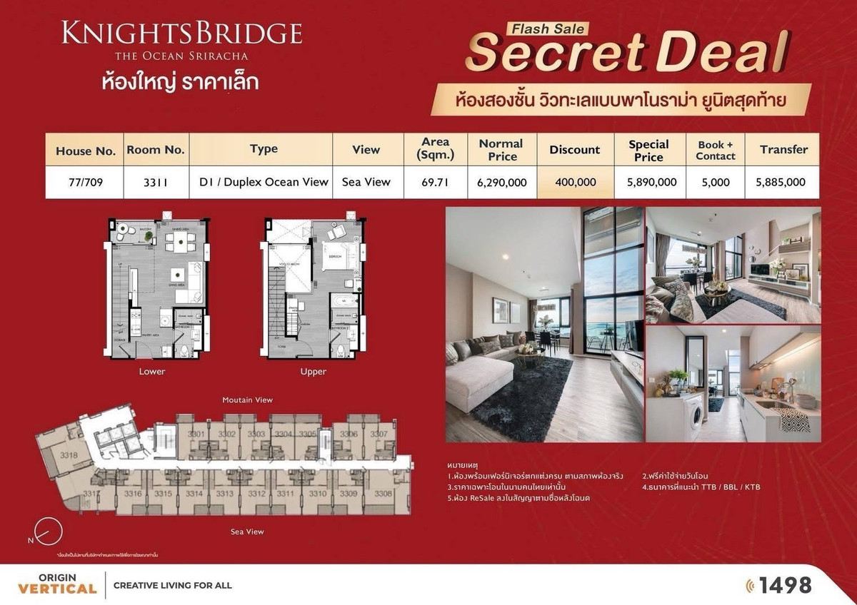 📍 𝗦𝗲𝗰𝗿𝗲𝘁 𝗗𝗲𝗮𝗹 ❗ 2-story condo Sea view⛵ "𝐊𝐧𝐢𝐠𝐡𝐭𝐬𝐁𝐫𝐢𝐝𝐠𝐞 𝐭𝐡𝐞 𝐎𝐜𝐞𝐚𝐧 𝐒𝐫𝐢𝐫𝐚𝐜𝐡𝐚" Luxury condo, ready to move in, fully equipped with all functions. ! For superior relaxation 🛏 33rd floor, corner room, not connected to the next room ✨Size 𝟗𝟔.𝟕𝟏 Sq.m.🛋 gets nature + extreme privacy 〰️🏷 Reserve only 𝟱,𝟬𝟬𝟬.- ✔️Special price 𝟓.𝟖𝟗 million baht 𝟓! ✋🏻Low installments, only 1 million baht/month . 🔮Location with feng shui, dragons belly. #Best in Sriracha "Sea view front Lean on the back of the mountain" 🏝✨🏞 Stay by yourself and be lucky. Invest and rent it out. ! . Style ᴍᴏᴅᴇʀɴ ᴊᴀᴘᴀɴᴇꜱᴇ ʟᴜxᴜʀʏ🏮 answers the needs of both Thai people and foreigners ⭐️convenient travel Next to Sukhumvit Road ⭐️Near work, Industrial Estate, Laem Chabang Port 𝟏𝟎 minutes ⭐️Near Robinson & Central Sriracha and leading hospitals ⭐️Potential location, Sriracha, in the heart of 𝐄𝐄𝐂 🏢Visit the project: INBOX page or click link https://line.me/ti/p/UcqRydZGZU 🔖Line : pkarunee If interested, ask for more information, call 📞 Contact number (Pookie) #knightsbridge #knightsbridgesriracha #knightsbridgetheoceansriracha #condo #japanesesstyle #readytomove #thaioil #ptt #origin #Condoreadytomove #Sriracha Condo #Condo ready to move in Sriracha #Japanese style condo #originproperty #originineec