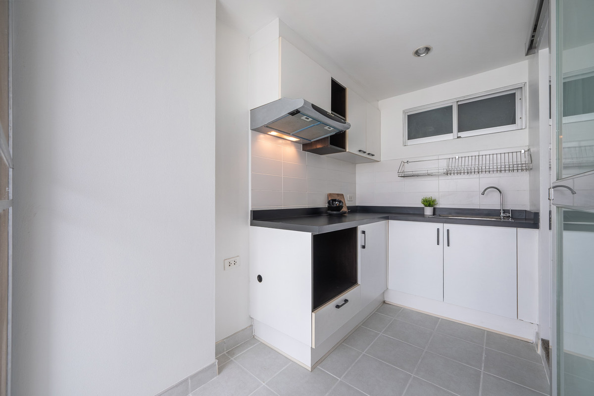 Big room 35 sq m., L-shaped kitchen, really usable, near MRT Huai Khwang.