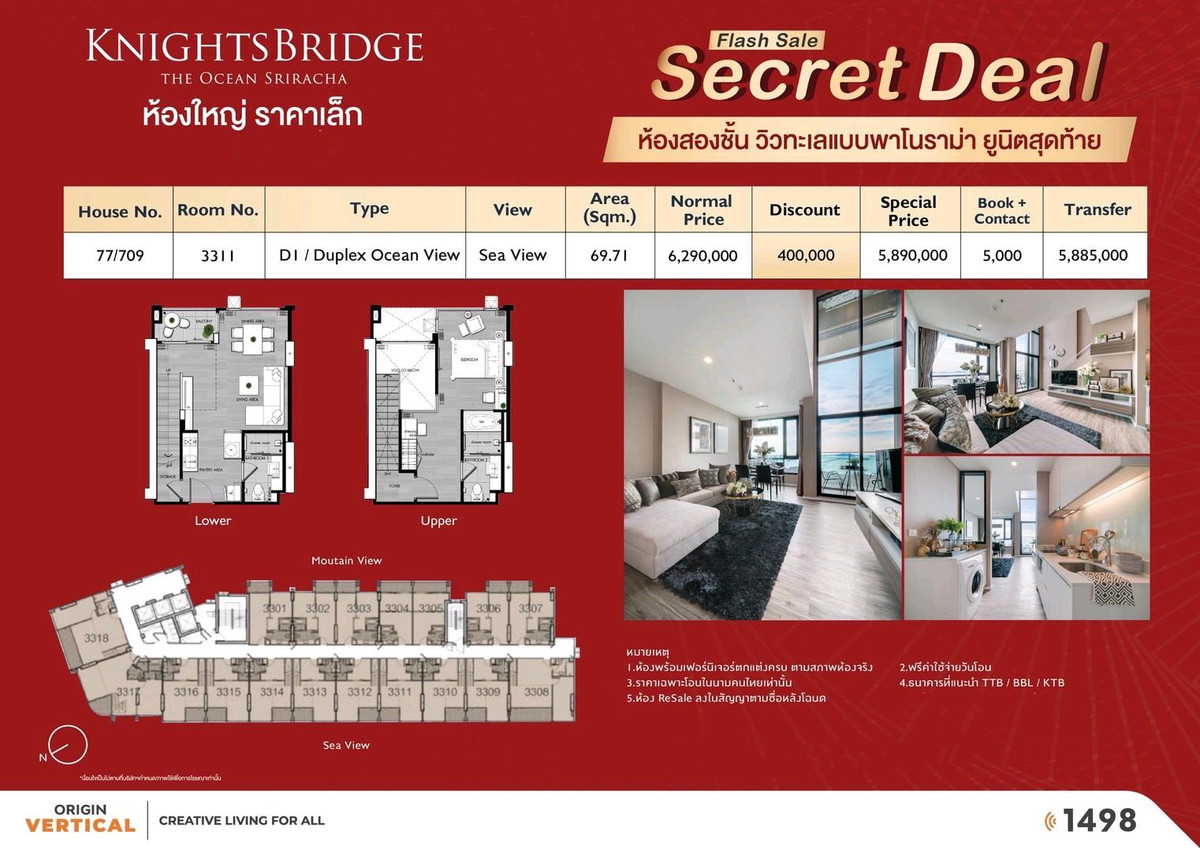 KnightsBridge The Ocean Sriracha 🌊✨ 💎 Special DEAL! Condo with a great view "Dragons Belly" Sriracha KnightsBridge The Ocean Sriracha - The ultimate in superior relaxation in Modern Japanese Luxury style, perfect in a prime location! 🔑 The most detailed room Exclusive Size: 35.34 sq m (5th floor) Highlights: Maximum privacy and close to nature Status: Ready to move in! Fully furnished and fully functional 〰️🏷 Reserve only 𝟱,𝟬𝟬𝟬.- ✅️Starting price only 2.99 million baht 💳! ✅️Low installments, only 3,000 baht per million/month 🐉 The best feng shui location "Dragons Belly" At Sriracha a condo that has been dubbed "Sea view front Leaning on the back of the mountain" – The most auspicious Feng Shui: Stay by yourself and be lucky: receive good energy for a prosperous life Invest and be successful: potential location in the heart of EEC, can be rented out at a high price. Both Thai people and foreigners (Especially Japanese) 🗺️ Connect every dimension of life in 10 minutes! Convenient travel Next to Sukhumvit Road: Close to work areas: Industrial Estate, Laem Chabang Port (only 10 minutes) Close to shopping/lifestyle areas: Robinson, Central Sriracha Close to medical facilities: leading hospitals 💥 Dont let this opportunity slip away! Special deals are limited 📞 Inquire/make an appointment to visit the project (Ready to receive secret promotions!): Contact: Tanyong Living Creator Happy to give advice Call: Contact number LINE ID: tanyongna Click add Line immediately: https://line.me/ti/p/YG1RpejTBi #KnightsBridgeTheOceanSriracha #Sriracha Condo #Condo ready to move in #EEC #JapaneseStyleCondo #Seaview Condo #Condo Investment #OriginProperty