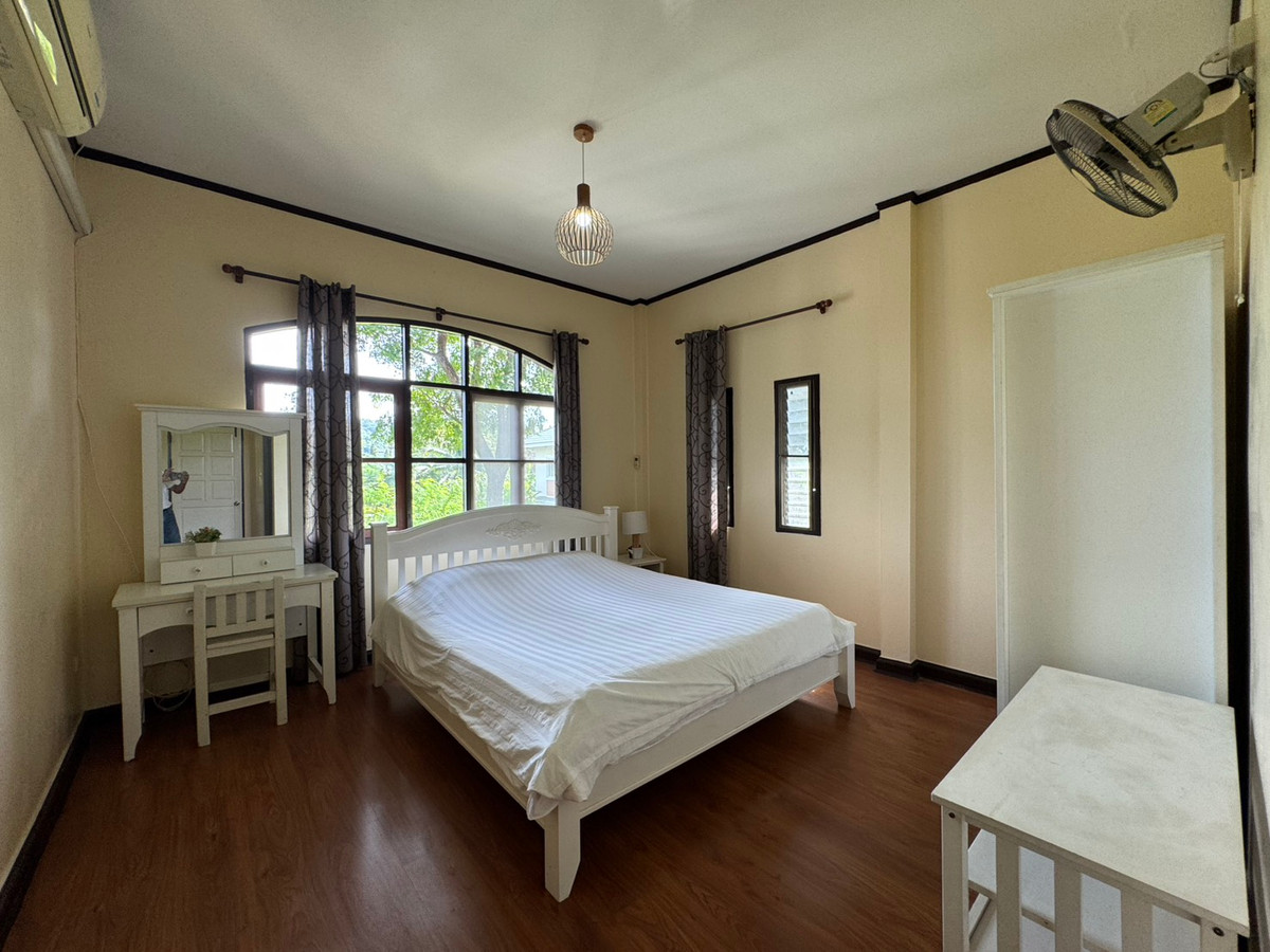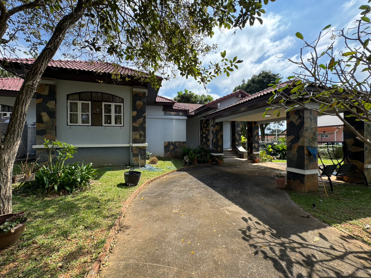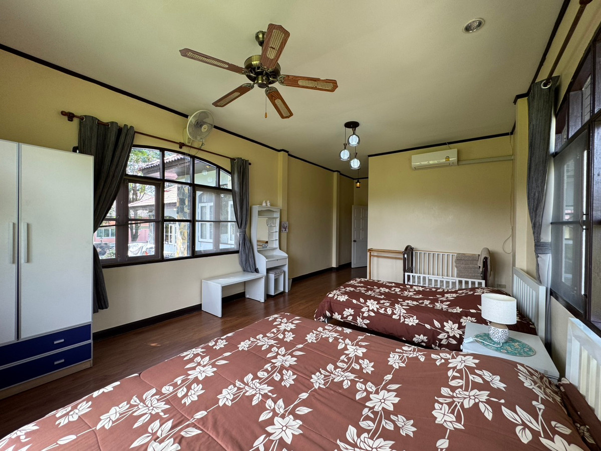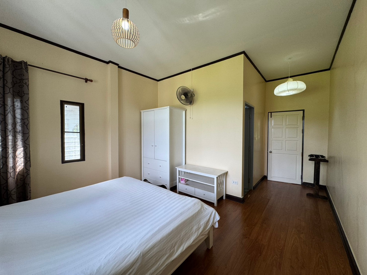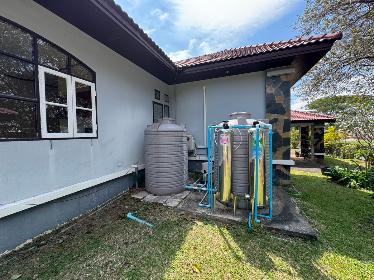 Price 6,500,000 baht (transfer costs borne by the seller) Area 250 sq m., one-story house. 1. 3 bedrooms with air conditioning There is an ensuite bathroom and water heater in every room. 2. 1 living room 3. 1 kitchen, 1 laundry room with 1 maid's house and the water supply system has 2 large water tanks with water filters. Available amenities Bedroom 1, 6 foot bed + 3 foot bed + dressing table Bedroom 2, 6 foot bed + wardrobe + dressing table Bedroom 3: 6 foot bed + 3 foot bed + children's bed + wardrobe + dressing table Hall for receiving guests or relaxing The floor is covered with marble, 1 sofa, TV, shelf, table, 2 ceiling lamps, 1 multipurpose table, air conditioner, 1 floor fan. kitchen Gas stove, refrigerator, built-in kitchen storage, 1 dining table, microwave, floor fan. Interesting points: good environment, good weather, near the club and pool. Traveling is very convenient. From Bangkok to the accommodation, distance 165 km., travel time approximately 2.30 hours.