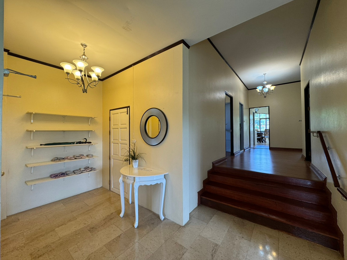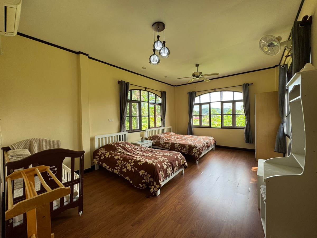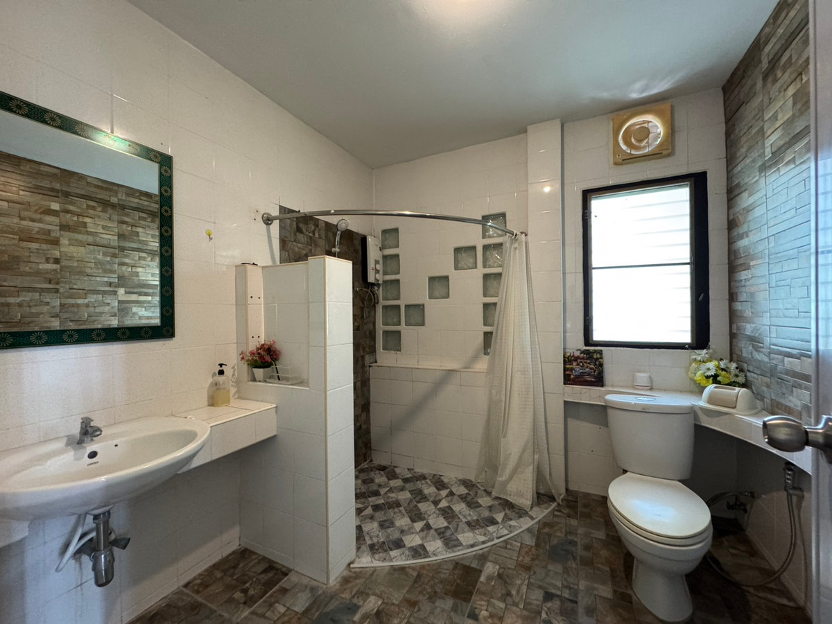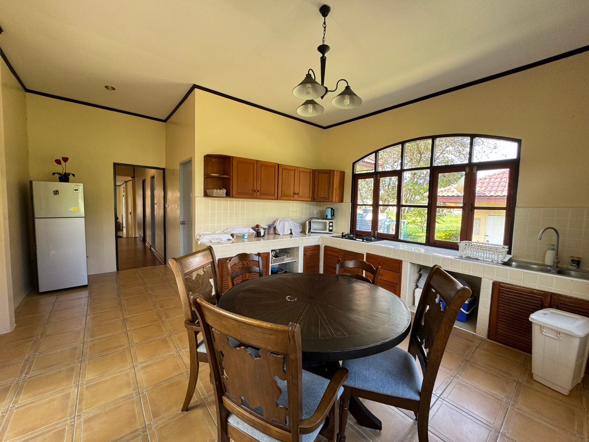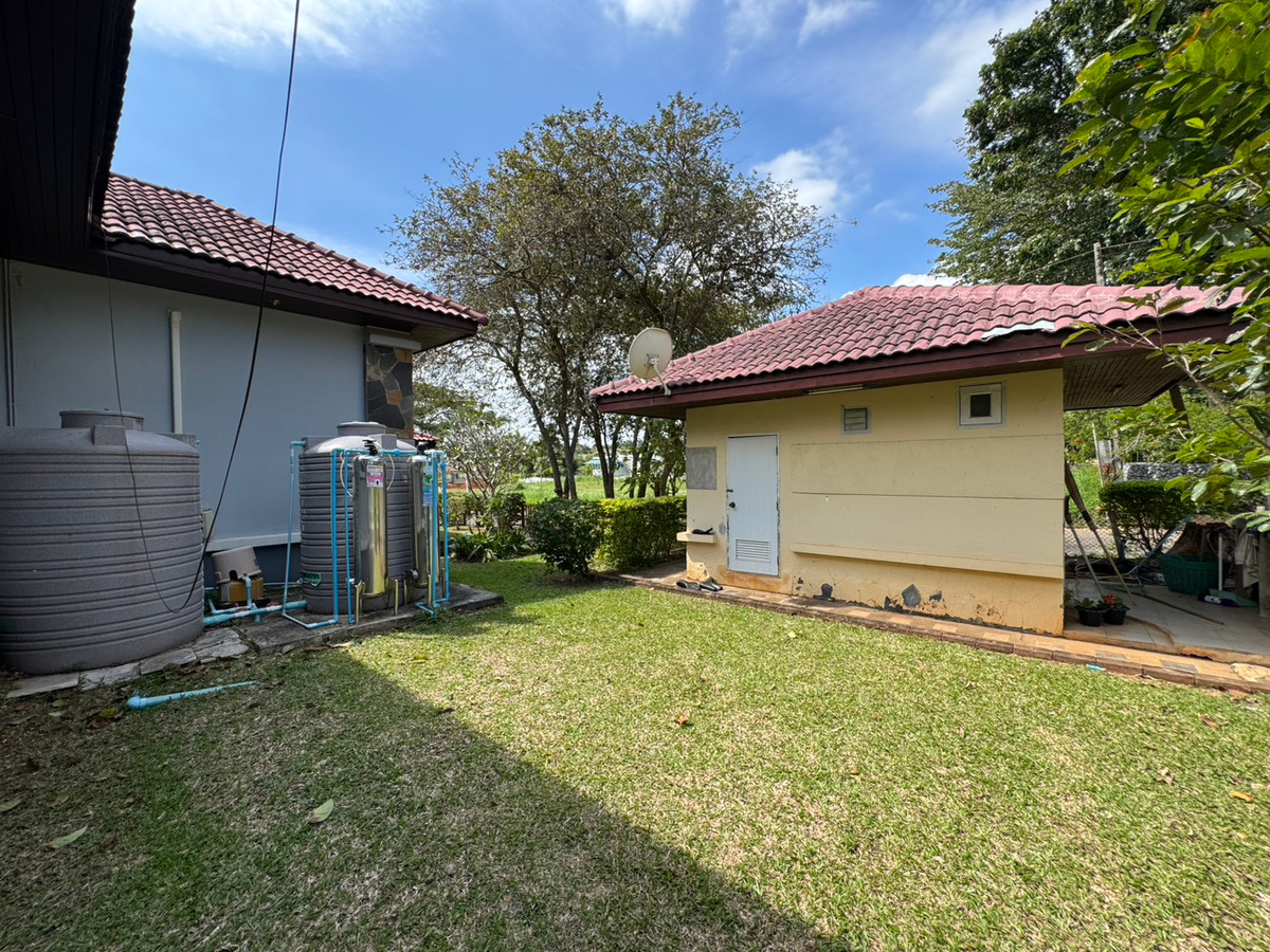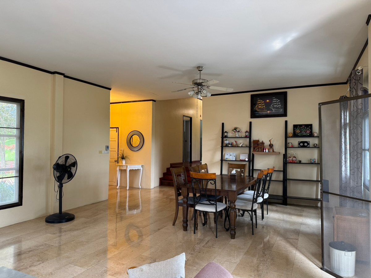 Price 6,500,000 baht (transfer costs borne by the seller) Area 250 sq m., one-story house. 1. 3 bedrooms with air conditioning There is an ensuite bathroom and water heater in every room. 2. 1 living room 3. 1 kitchen, 1 laundry room with 1 maid's house and the water supply system has 2 large water tanks with water filters. Available amenities Bedroom 1, 6 foot bed + 3 foot bed + dressing table Bedroom 2, 6 foot bed + wardrobe + dressing table Bedroom 3: 6 foot bed + 3 foot bed + children's bed + wardrobe + dressing table Hall for receiving guests or relaxing The floor is covered with marble, 1 sofa, TV, shelf, table, 2 ceiling lamps, 1 multipurpose table, air conditioner, 1 floor fan. kitchen Gas stove, refrigerator, built-in kitchen storage, 1 dining table, microwave, floor fan. Interesting points: good environment, good weather, near the club and pool. Traveling is very convenient. From Bangkok to the accommodation, distance 165 km., travel time approximately 2.30 hours.