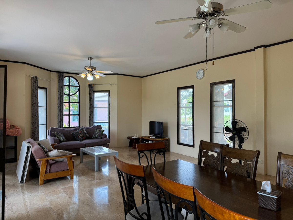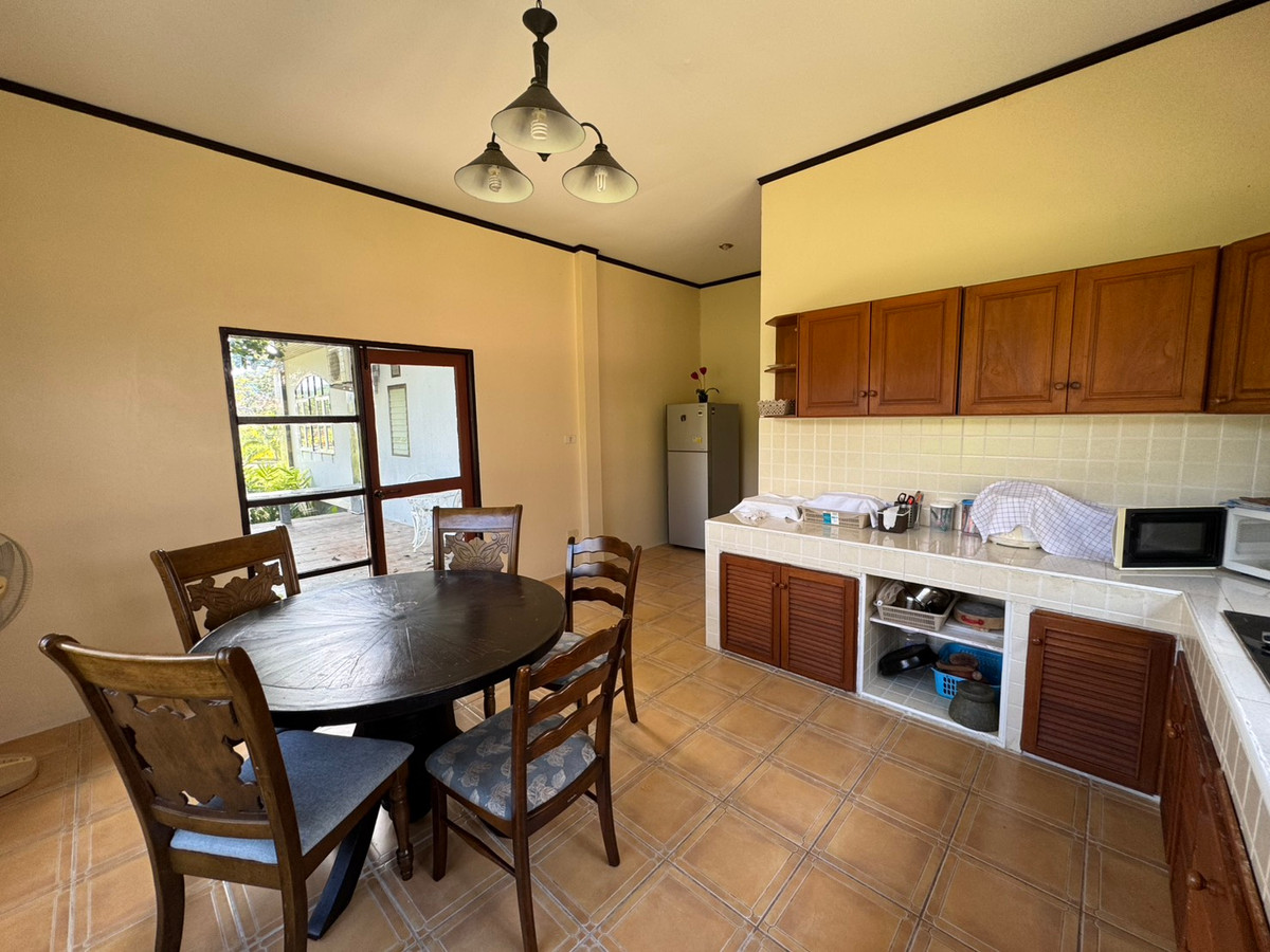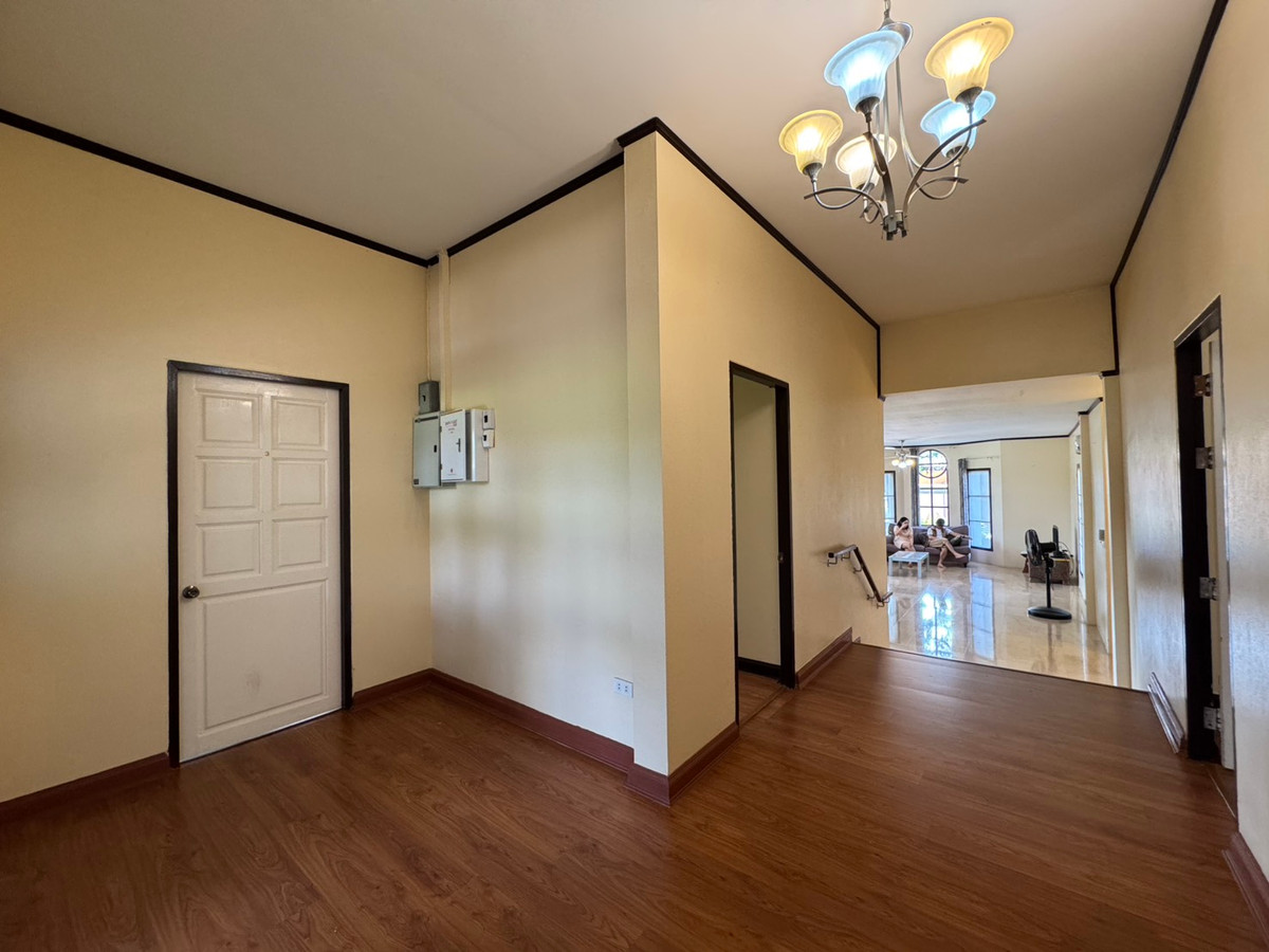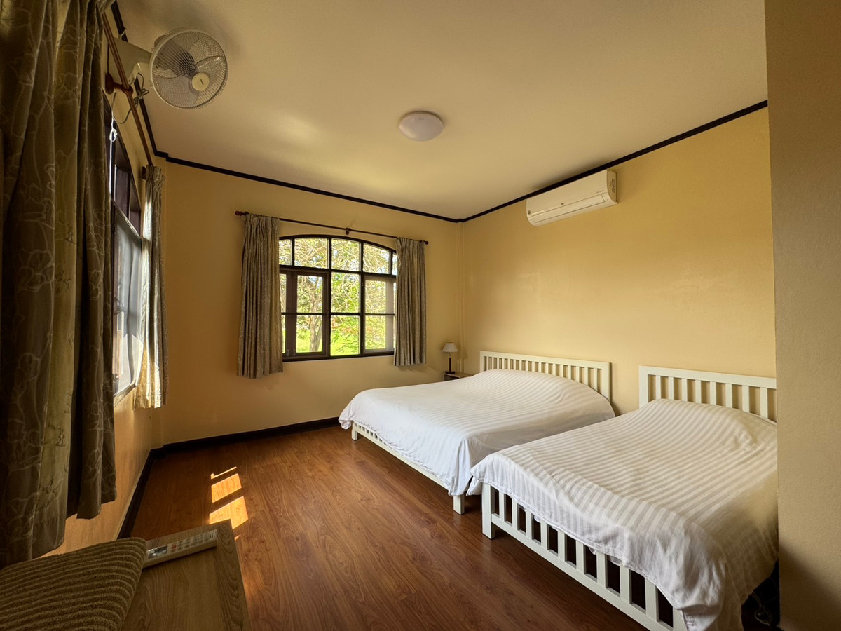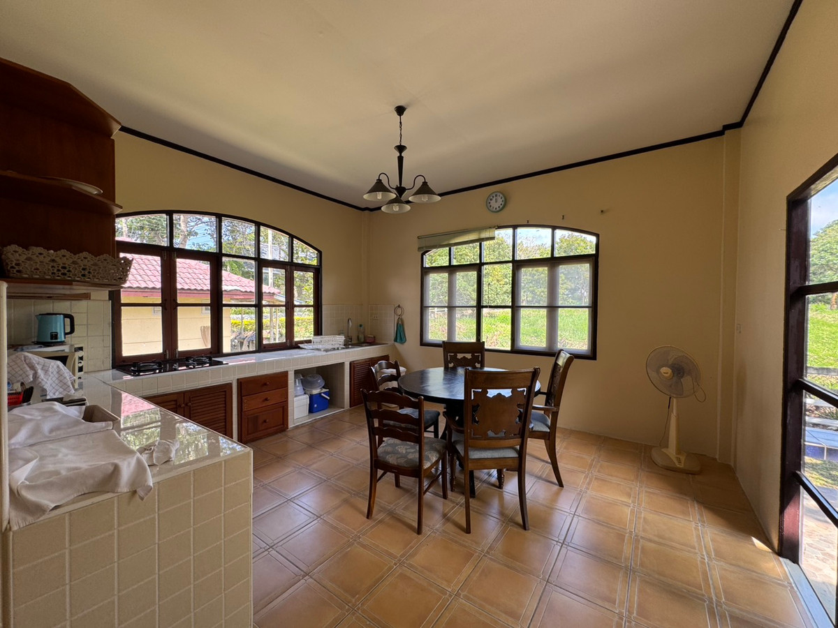 Price 6,500,000 baht (transfer costs borne by the seller) Area 250 sq m., one-story house. 1. 3 bedrooms with air conditioning There is an ensuite bathroom and water heater in every room. 2. 1 living room 3. 1 kitchen, 1 laundry room with 1 maid's house and the water supply system has 2 large water tanks with water filters. Available amenities Bedroom 1, 6 foot bed + 3 foot bed + dressing table Bedroom 2, 6 foot bed + wardrobe + dressing table Bedroom 3: 6 foot bed + 3 foot bed + children's bed + wardrobe + dressing table Hall for receiving guests or relaxing The floor is covered with marble, 1 sofa, TV, shelf, table, 2 ceiling lamps, 1 multipurpose table, air conditioner, 1 floor fan. kitchen Gas stove, refrigerator, built-in kitchen storage, 1 dining table, microwave, floor fan. Interesting points: good environment, good weather, near the club and pool. Traveling is very convenient. From Bangkok to the accommodation, distance 165 km., travel time approximately 2.30 hours.