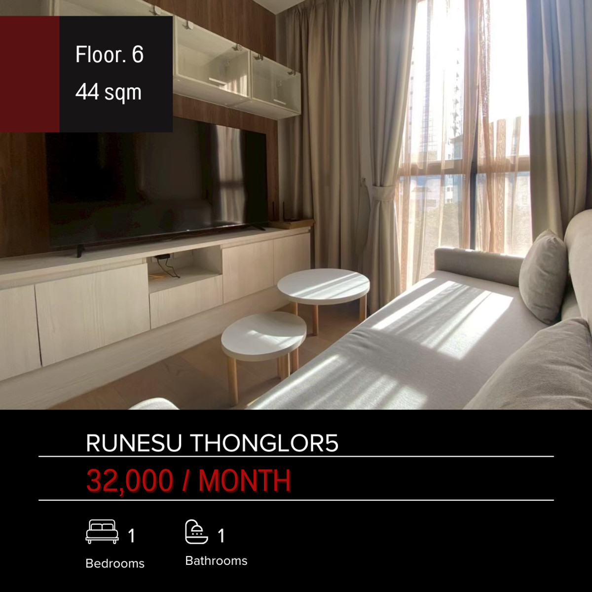 For Rent Ready to move Condo : Runesu Thonglor5 Size : 44 SQM Floor. 6 Type: 1 bedroom 1 bathroom Rent Price : 32,000 Baht Tel. Contact number ( Anda ) WhatsApp Contact number (Anda) Line @285gshuc #R