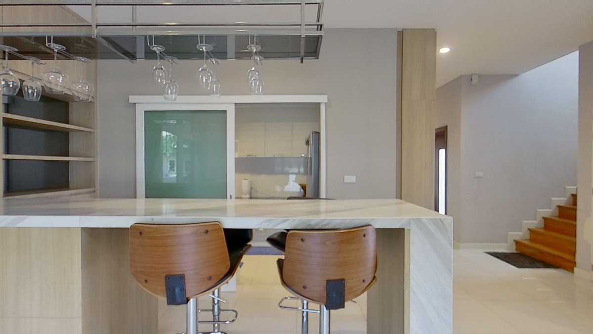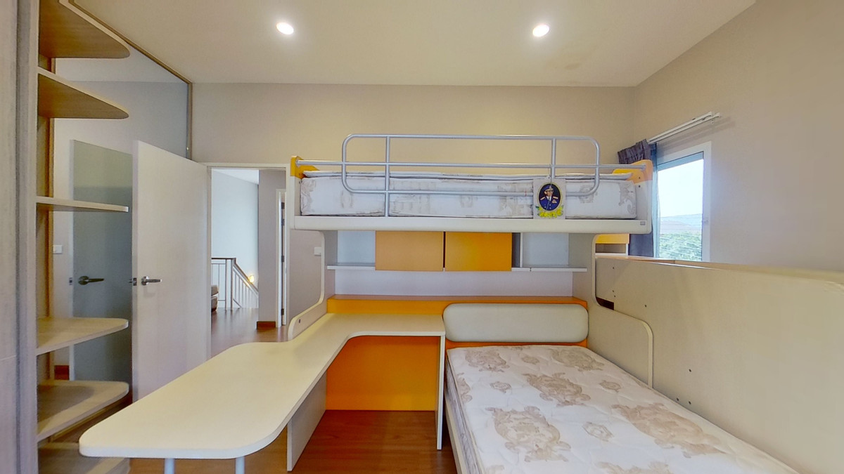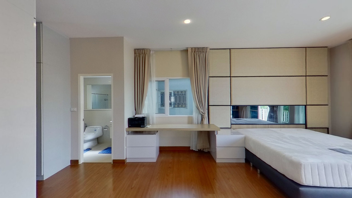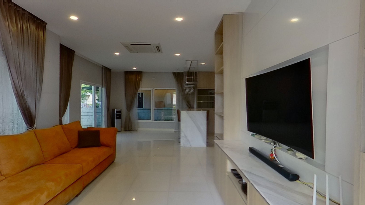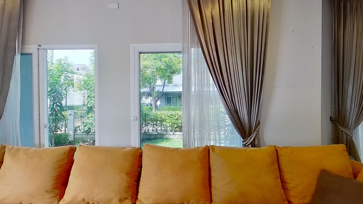Discover a serene urban retreat in this spacious 5-bedroom, 4-bathroom house at The City Sukhumvit – Bangna, perfectly situated on a green, tree-lined corner lot on Sanphawut Road, Soi Com7. With a generous lawn and abundant natural light, this home offers a peaceful oasis just 2 km from Bangkok Mall, Central Bangna, BITEC, international schools, and BTS Sukhumvit Road, combining convenience with comfort. Designed for modern family living, the house features a fully furnished interior with multiple living areas, including downstairs and upstairs lounges, and a fully equipped Western kitchen with a large fridge-freezer, bar with wine cooler, and four bar stools. A dedicated laundry area includes a high-tech 14 kg LG washing machine, while the outdoor covered living space provides ample room for relaxation or entertaining guests. The property includes separate maid’s quarters, six air-conditioning units, off-street parking for two cars, tinted window films, and curtains on all windows. Positioned at the end of the Moo Baan, it enjoys minimal traffic and friendly neighbors, making it a private and safe environment for family life. With its combination of space, style, and thoughtful amenities, this home is ideal for families seeking a move-in ready residence in a vibrant, well-connected neighborhood, blending comfort, convenience, and a touch of luxury in one complete package.