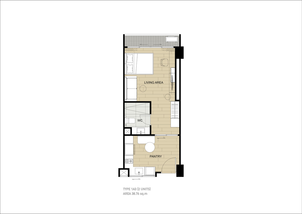 คอนโดกว้าง ทำเลรามคำแหง 22 Rare Item 1 ห้องนอน 42.86 ตร.ม. แค่ 1.96 ลบ.