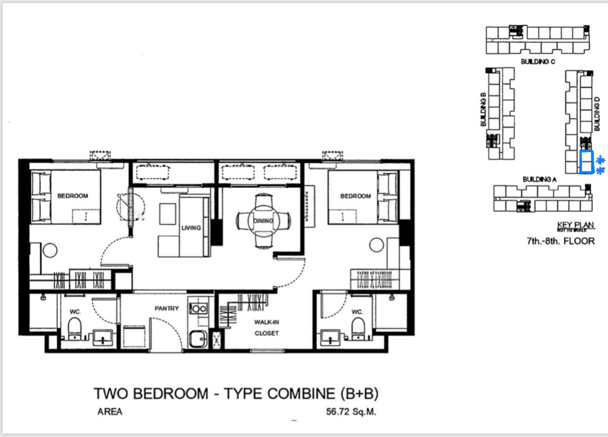 Property code (C3-JOB06) Phyll Phahol 34 Next to BTS Senanikom 2 bedrooms, 2 bathrooms Size 57.28 sq m., 8th floor, Building D ,South direction, good wind. Beautiful room, open view Fully furnished +