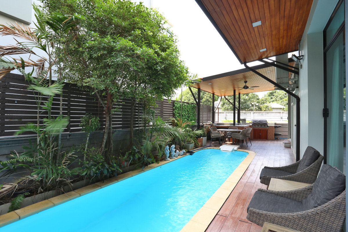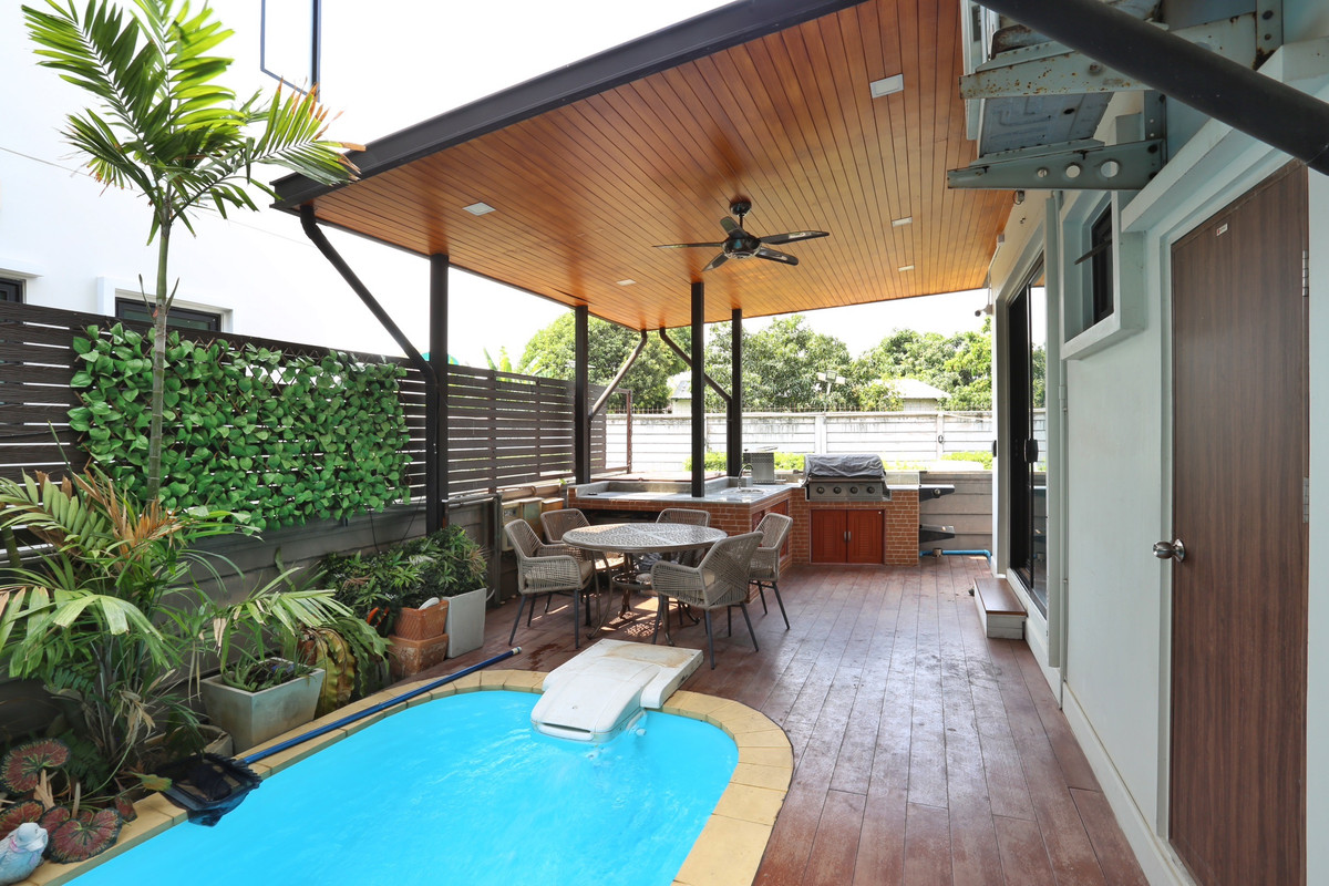 3-storey detached house for sale, Sita Rama 2 project Price 9,500,000 baht Property details 3-storey detached house, usable area 350 square meters Land 70.40 square wa, private corner back Private swimming pool, salt system, newly renovated with bar area Solar cell energy system Save on long-term electricity costs Private sauna Total 7 air conditioners 5 bedrooms 5 bathrooms (Master Bedroom with bathtub) Parking for 3 cars Built-in Living Room, Built-in Kitchen and Built-in Master Bedroom New premium brand furniture Location highlight Located in the potential Rama 2 area, convenient travel, close to all amenities Central Rama 2 about 5 minutes BASIS International School School Nakhonthon Hospital Lotus Rama 2 and Big C Rama 2 Contact: Contact number (Khun Chujai) Line ID: choojaii99