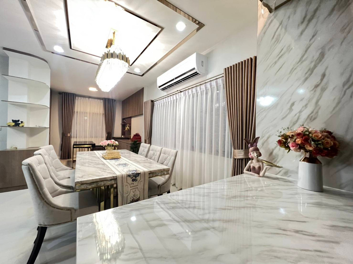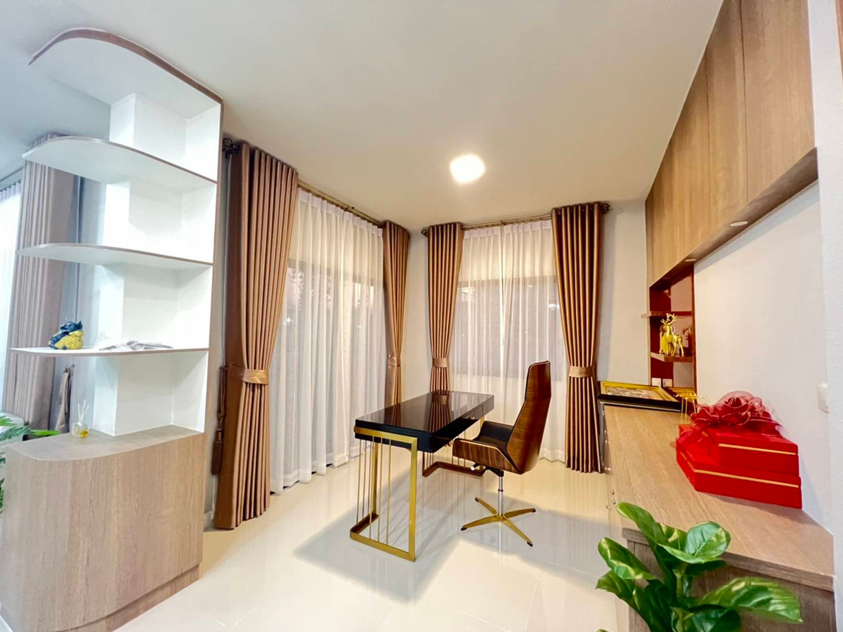 2-story detached house, Rangsit Khlong 6 Land 100 sq m. Phase 3 Opposite the park 4 bedrooms, 4 bathrooms Usable area 240 sq m. House with decoration Selling price 7.49 million baht Telephone number K