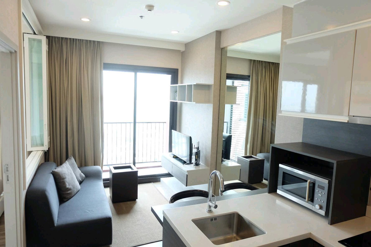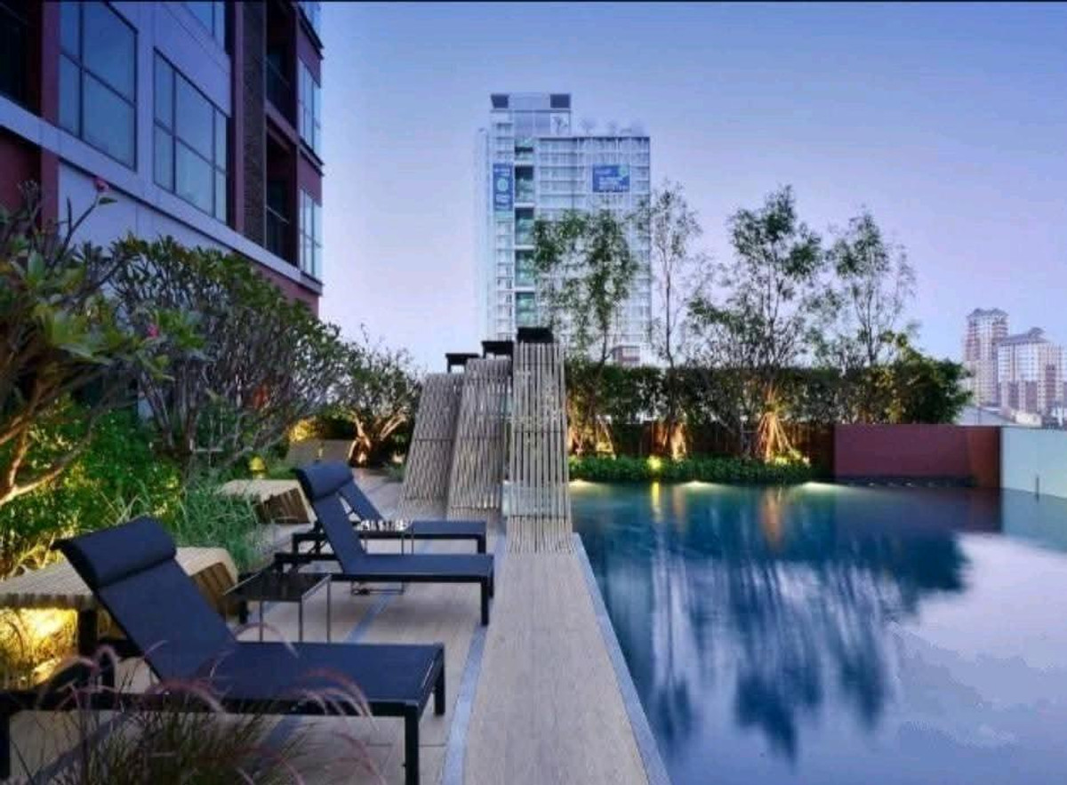 Condo Wan Sukhumvit 🎯Rent 15,000/month - 1 bedroom, 1 bathroom - 30 sq m. - Floor 20-25 - Beautiful city view - TV 32" Electric stove, range hood, refrigerator, microwave, washing machine/dryer 🚆