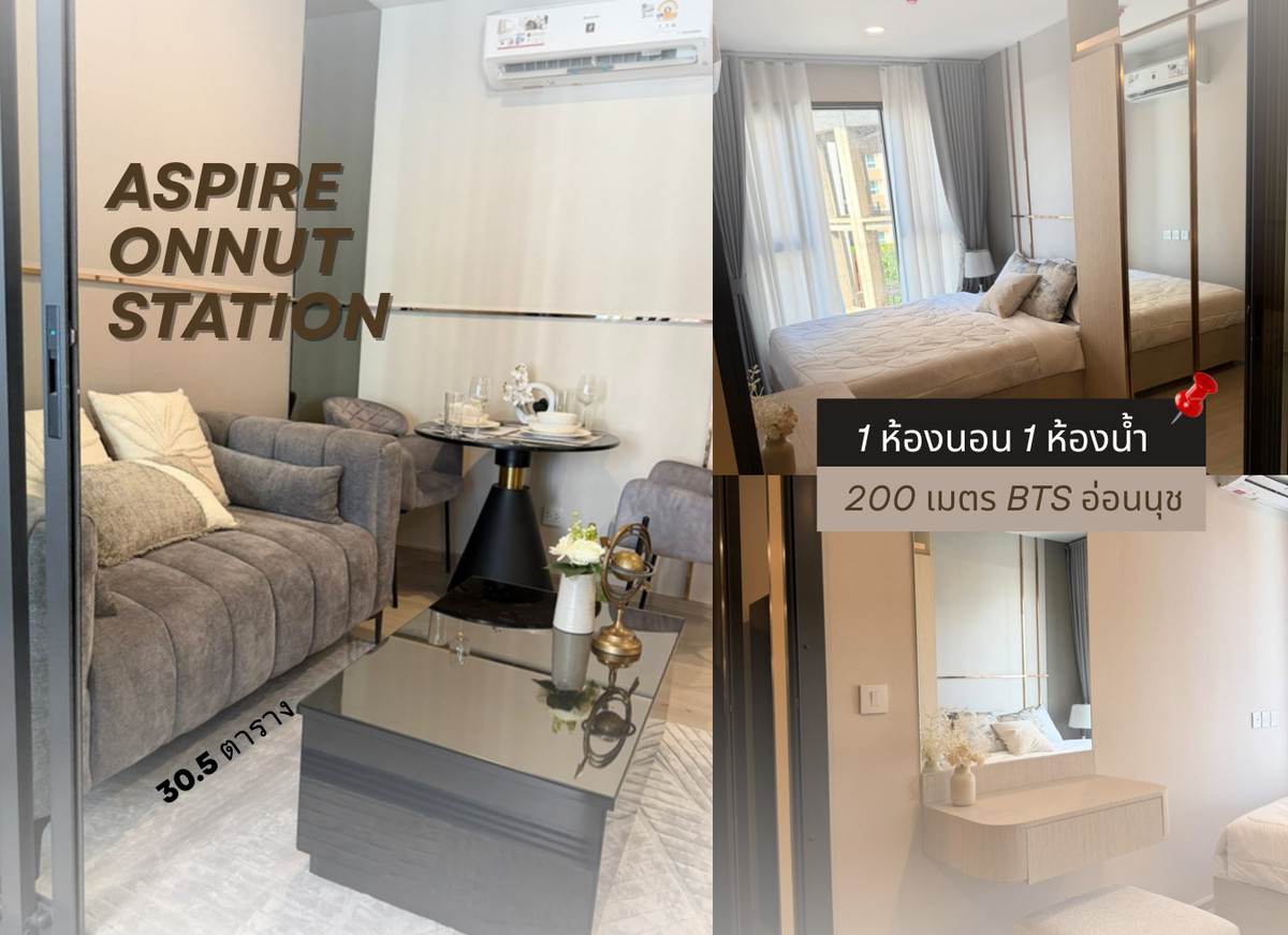 🏙✨ Aspire Onnut Station — 200 meters to BTS On Nut! New room Built-in throughout the room Complete electrical appliances You can move in 💯 1 bedroom | 30.5 sq m. | 6th floor TV 55" / 2 air conditioners / washer-dryer / rubber bed, very complete! Beautiful condo, hotel feel, great facilities 🌿 Sky Lounge | 🏊 Relax Pool | 💼 Co-working | 🏃 Trail Track | 🚗 Auto Parking 📍 Near BTS / Lotus / Big C, easy to walk everywhere 💰 Starting at 23,000 baht/month (1 year contract) Ready to move in today! 📲 If interested, please message me to see the room. ❤️