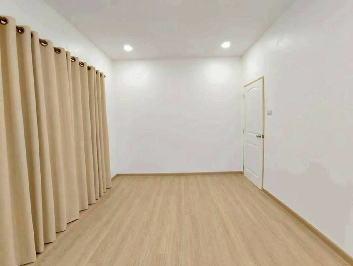 Details : Area size 50 sq m., completely renovated 3 bedrooms, 3 bathrooms 1 kitchen, 1 washing zone Selling price 3,190,000 million baht Free: Transfer day expenses within 2025 Renovation list : - Add a garage roof - Add a bedroom & bathroom - Kitchen addition & washing zone - Change tiles & sanitary ware - Check water supply & electricity system - SPC flooring Free gifts: - TV stand & shelves - 1 bedroom set - Kitchen counter with stove & exhaust hood - Dining table & 4 chairs - Curtains throughout the house & Ductile iron F-A10