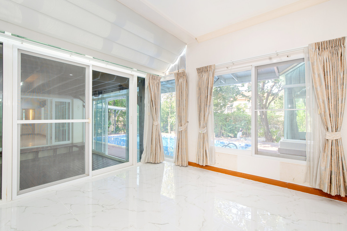 2-story luxury house for sale, Q House Avenue, Rama 5, area 231.5 sq m, 5 bedrooms, 5 bathrooms, edge plot with guest house. and a private swimming pool on Nakhon In Road, Nonthaburi Province, near Si Rat Expressway ---------------------------------------- Interested, ask for details/make an appointment to see the house Contact number Ms. Nun Yolsiri Line : yolsiri -------------------------------------------- House details - 2-storey luxury house, land size 231.5 sq m. - usable area 466 sq m. - 5 bedrooms, 5 bathrooms, 1 Thai kitchen and 1 maids room + 1 separate bathroom + laundry room - The main bedroom has 2 shower areas, a Jacuzzi bathtub, shower, and double sinks. - Upstairs in the central hall is a Buddha room - Bedrooms 2,3 and ensuite bathrooms in every room. - Ground floor has 2 bedrooms with ensuite bathrooms. Suitable for the elderly , or make it into an office room ,or make it a fitness room Or making it into a home theater room would be suitable - 1 large living room It was designed to look open and airy, able to see a view of the swimming pool - with a proportionally proportioned Thai kitchen in the back - 1 maids room with separate bathroom With laundry room - guest house with en-suite bathroom next to the swimming pool - Separate parking garage on the side of the house, can park 5-6 cars - Shady garden area Feeling airy and comfortable. And there is quite a lot of space left on the side - The front of the house faces north, the sun is not hot Highlights of the house - House with a large plot of land, edge plot, has a shady garden area - Lots of usable space Suitable for large families - there is a guest house. and swimming pool facilities - Security system with CCTV, 24 hour security guard - Swimming pool, fitness - The projects garden is beautifully decorated and shady, can be used to relax and exercise - The society is pleasant, peaceful and not chaotic. Gives a feeling of calm and privacy Nearby places - Central Westgate, Central Westville, Plus Mall, The Walk Ratchaphruek, The Crystal SB Ratchaphruek, HomePro Ratchaphruek, Villa Market -Ratchapruek University, Triamudom Siksa Pattanakarn Bang Yai School, Denla Kindergarten School - Rama 5 Market, Phra Pin 3 Market, Chaloem Kanchanaphisek Park, Kasemrad Hospital Bang Yai Exclusive Asset : Luxury Real Estate Agency Exclusive Asset, professional agent for buying and selling branded houses, luxury mansions especially Zone Ratchaphruek, Boromarajonani, Kanchanaphisek, Rama 5, Rattanathibet, Phetkasem, Nonthaburi Find a beautiful house in the same location at www.exclusive-asset.comFacebook : exclusive asset YouTube Channel : exclusive asset Instagram : exclusive asset TikTok : exclusive hometour TAG# Single house, Q.House,Q.HOUSE AVENUE Rama 5,Q House,Q House Avenue, Q House Avenue Rama 5, house, house Q House, detached house, luxury house Nonthaburi, detached house Q.house Avenue, detached house Quality house, detached house Q House, detached house Nakhon In, detached house Nonthaburi, detached house Bang Kruai, detached house Bang Khu Wiang, detached house Bang Bua Thong, detached house Bang Yai, detached house Rama 5, luxury detached house Nonthaburi, luxury house in the suburbs, single house Near Kanchanaphisek