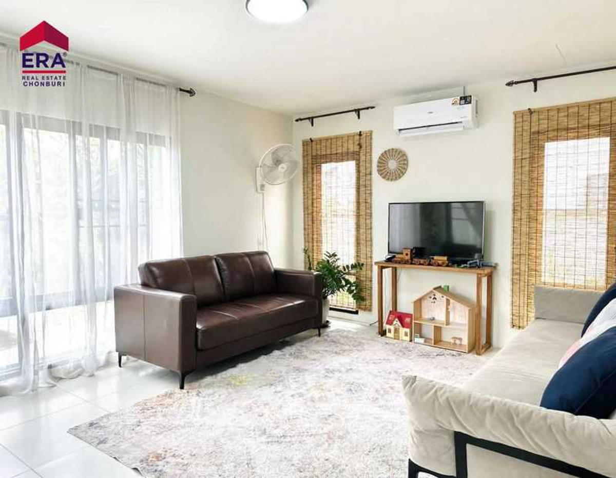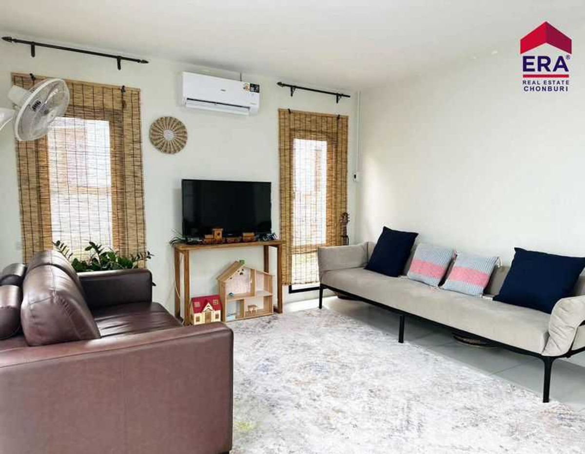 Detached House for Sale: The Valley Sriracha Village, 201 sqm, near Aeon Mall Sriracha Project Highlights: Tranquil Environment: Quiet, private, and uncrowded village atmosphere. Optimal Climate: Located on a hillside, offering good airflow year-round and fresh air. Security: 24-hour security system. Connectivity: Close to the Motorway and Highway 331, providing convenient travel in all directions. Ideal for Families: Atmosphere suitable for families seeking peace and relaxation space. Asset Information: Asset Code: L084328 Property Type: Detached House Land Size: 86.00 sq. wah Usable Area: 201.00 sq.m. Floors: 2 Layout: 3 bedrooms, 3 bathrooms (Note: The listing details state 3 bathrooms, but the info section says 1, I will use the detail breakdown) Appliances: 4 air conditioners House Details: Type: 2-story detached house. Size: 86 sq. wah (Land), 201 sq.m. (Usable Area). Layout: 3 bedrooms, 3 bathrooms. Orientation: Faces Northwest. Inclusions: Built-in kitchen, 4 air conditioners, 2 water heaters, water pump + underground water tank. Condition: Modern style house, ready to move in immediately without extra decoration costs. Project Facilities: CCTV 24-Hour Security Fitness Center Indoor Parking Swimming Pool Nearby Locations: Schools: Assumption Sriracha School / Darasamutr School Shopping: Robinson Sriracha / Aeon Mall Sriracha, J-Park Industrial Zones: Sahaphat Industrial Park / Pinthong Industrial Estate Hospitals: Phyathai Sriracha Hospital / Samitivej Hospital Leisure: Sriracha Tiger Zoo / Bang Phra Beach / Koh Loi Island