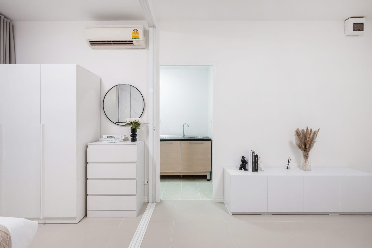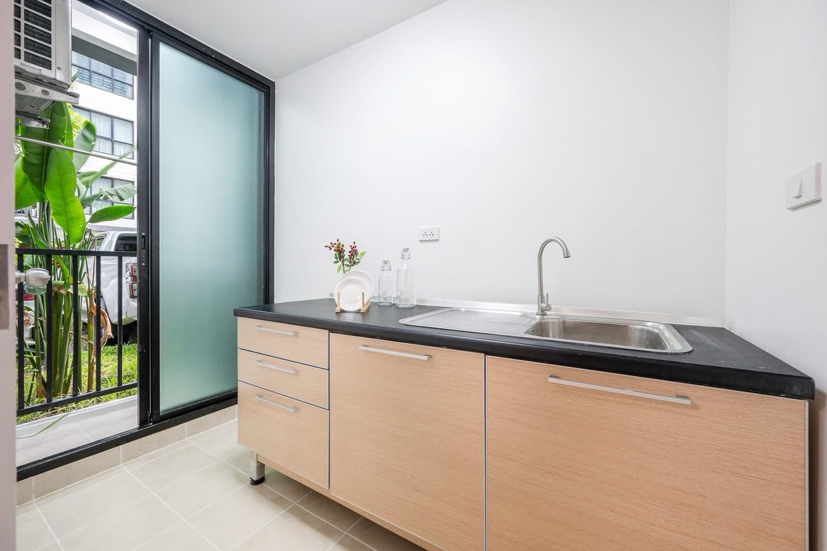 🏡Condo Be You Chockchai 4 - Building B, 1st floor - Size 29 sq m. - 1 bedroom | 1 living room | 1 kitchen | 1 bathroom | 1 balcony - Room proportions are very good. Kitchen closed on balcony side Inte