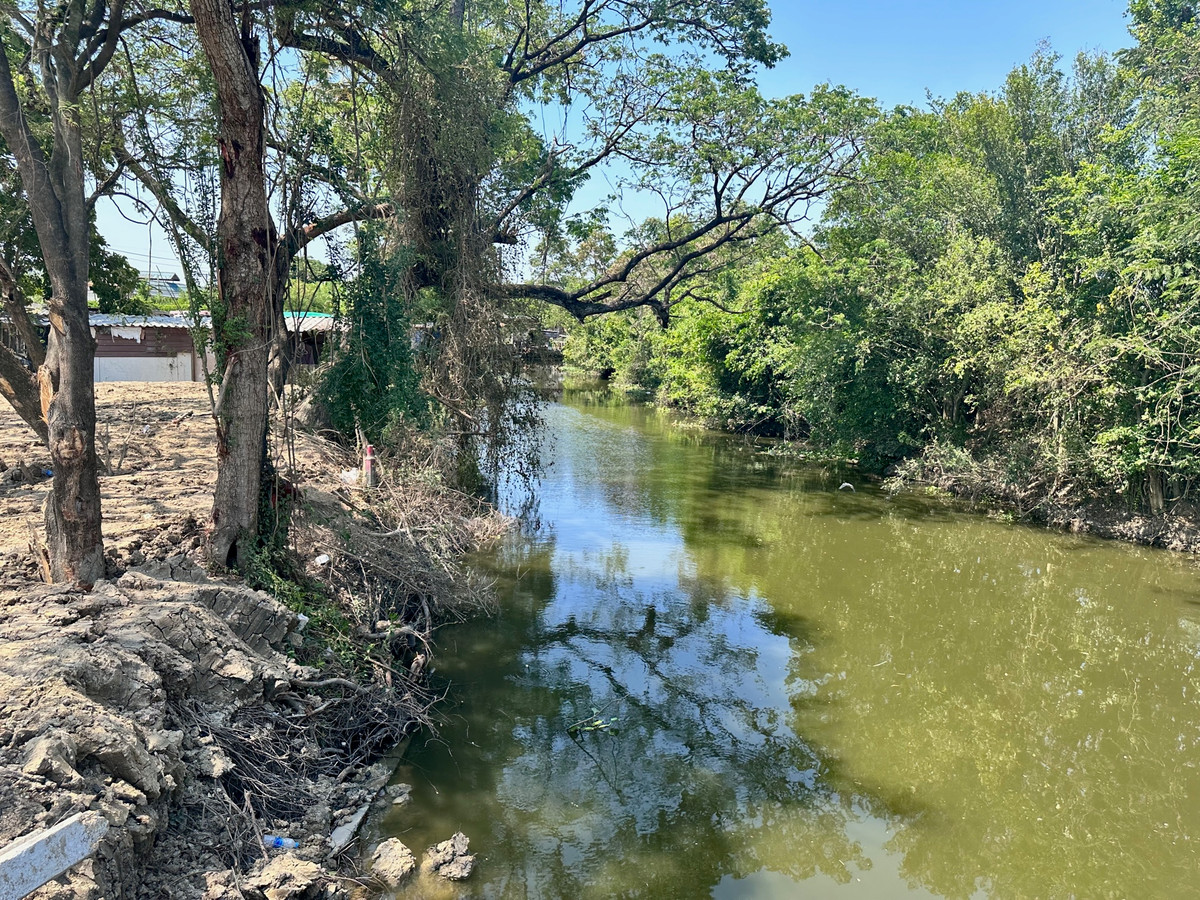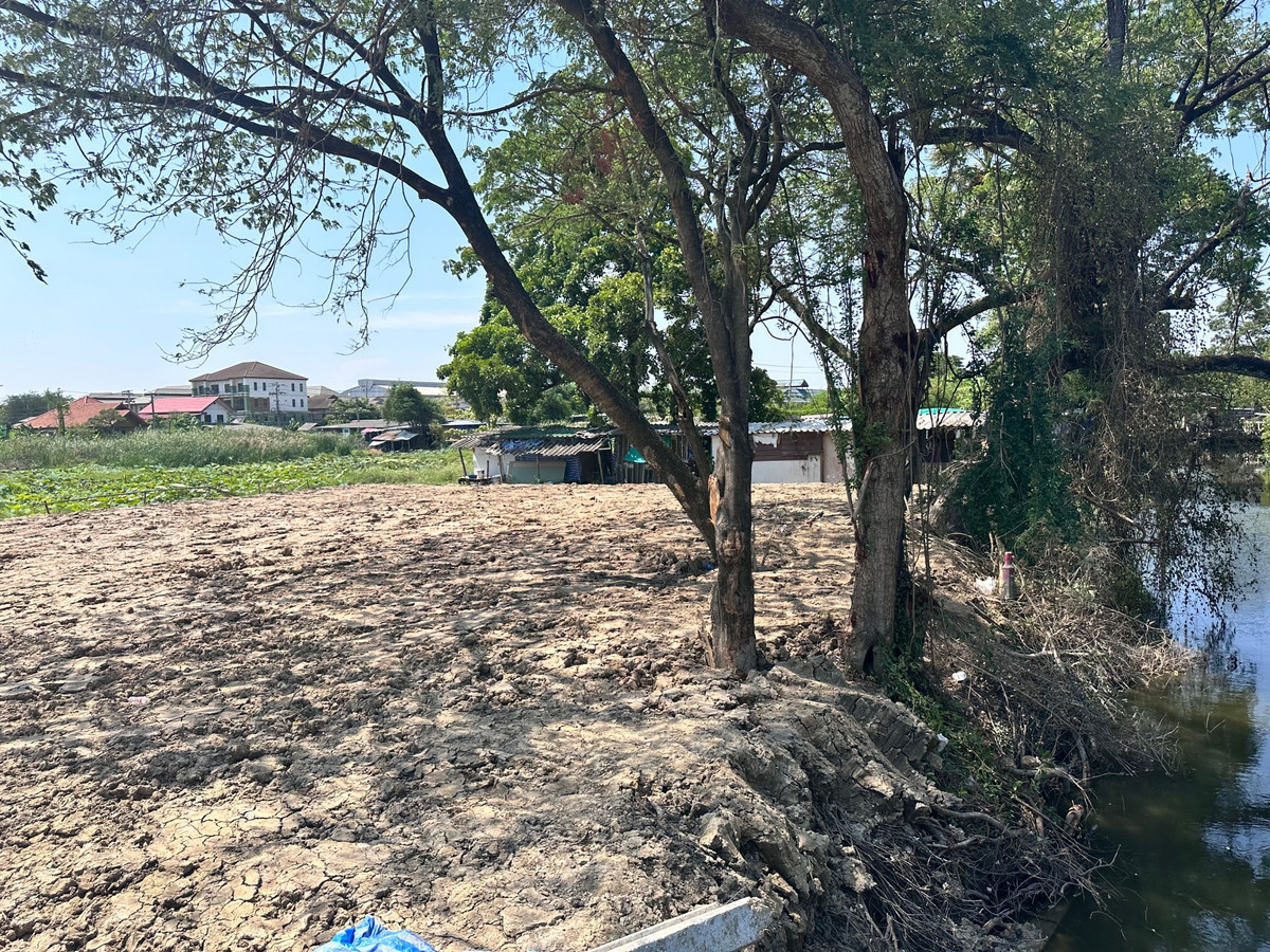 Empty land for sale, 210 sq m., already filled in, ready to be fenced in, next to a canal, in Soi Bang Yai Hospital, width 33 m., depth 27.5 m.