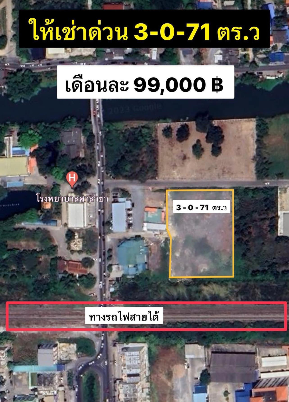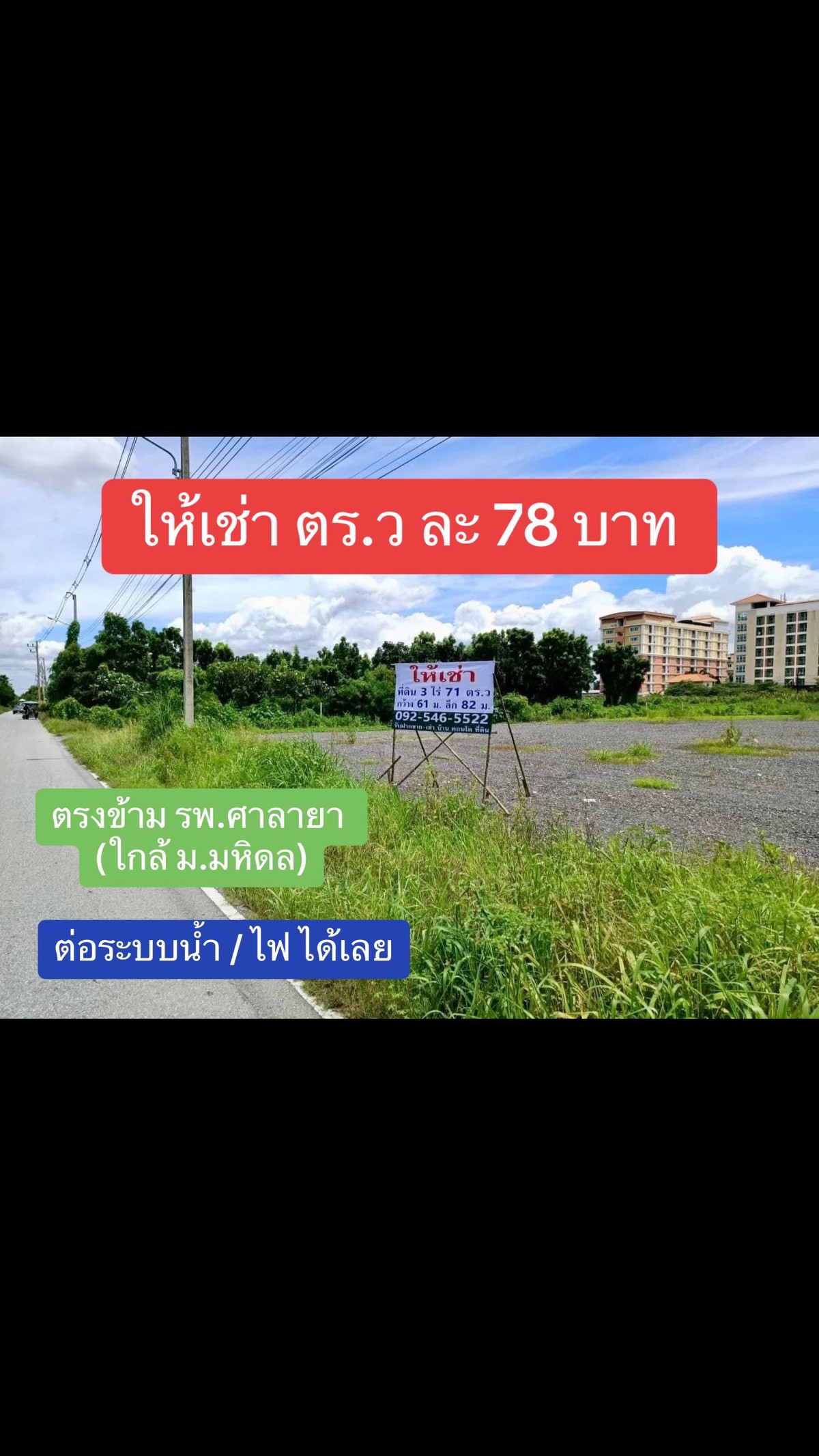 ✅ Land for rent, already filled in (3 rai 71 sq m) with title deed Phutthamonthon, Salaya / good location near Mahidol University, Salaya ☑️ Width 61 meters x depth 82 meters (already surveyed) ☑️ Land is opposite (Salaya Hospital), next to a public road. ☑️ Can connect to water and electricity systems ☑️ Near > Makro Salaya 550 meters ☑️ near Mahidol University > Only 2 km. ☑️ Suitable for a flea market, worker camp, etc. ❤️ For rent 99,000 baht per month * (78 baht per square wa) (Rent the whole plot, not split rent) ✅ ☑️ Contact Contact number