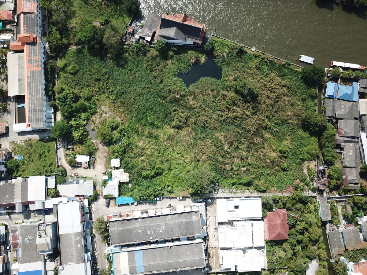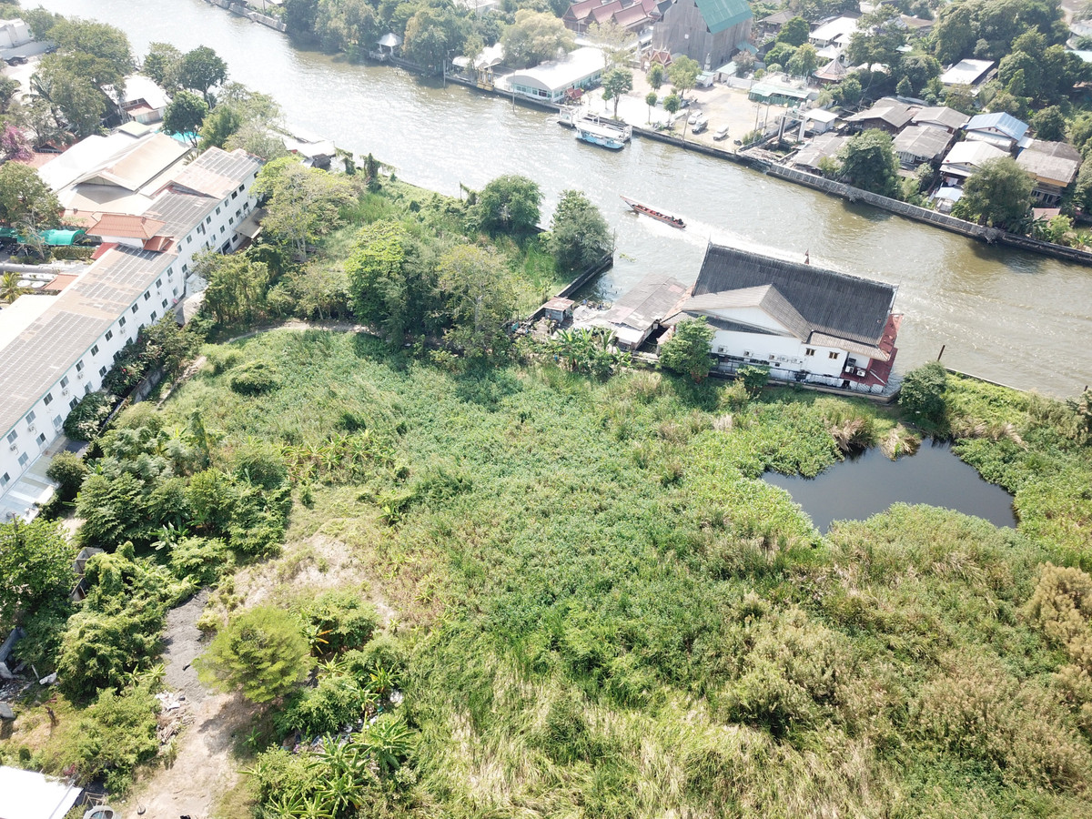 Waterfront land for sale Bangkok Noi Canal, near Chao Phraya Hospital, near Central Pinklao Total size 9-2-76 rai (3,876 sq m.) Selling price 90,000/square wa Total 348,840,000 baht You can view the l