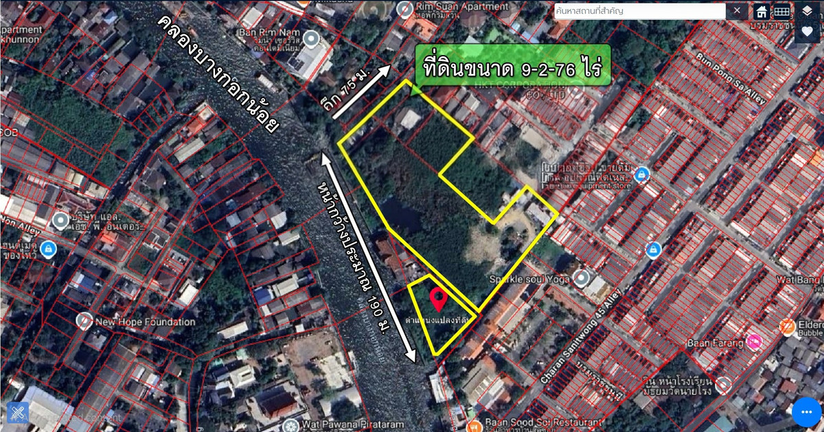 Waterfront land for sale Bangkok Noi Canal, near Chao Phraya Hospital, near Central Pinklao Total size 9-2-76 rai (3,876 sq m.) Selling price 90,000/square wa Total 348,840,000 baht You can view the land via Soi Borommaratchachonnani 15,17 The Sense Mall. Pinklao If interested, contact the appointed agent Call & Line ID: Contact number Quick, sincere, straightforward Land coordinates https://maps.app.goo.gl/3PB6xEGVBr9jaJXB9?g_st=an