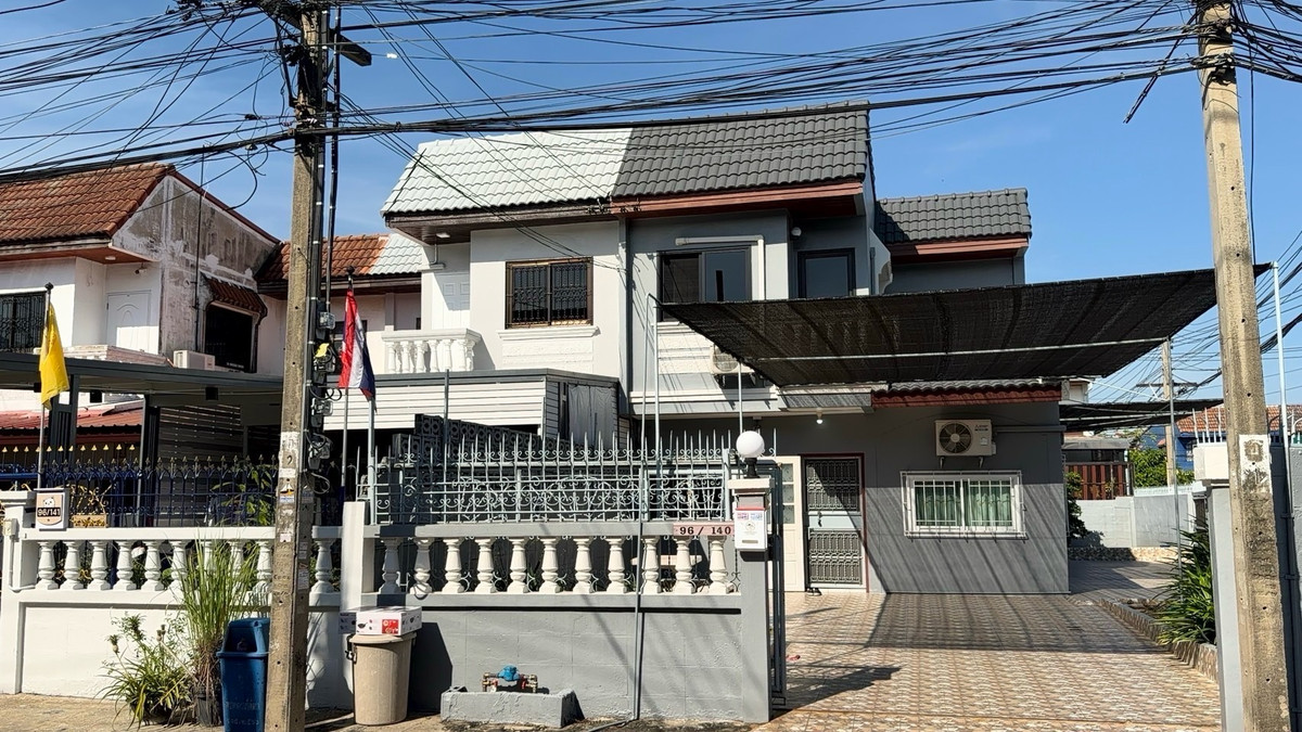 Ban Bua Thong Village House number 96/140 Soi 16/1 Townhouse, back side, area 56 square wah has 2 floors , has parking for 3 cars has 2 entrances, front and side (has a very long wall) 4 bedrooms 2 ba