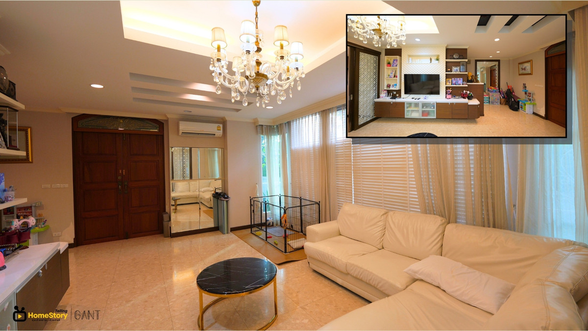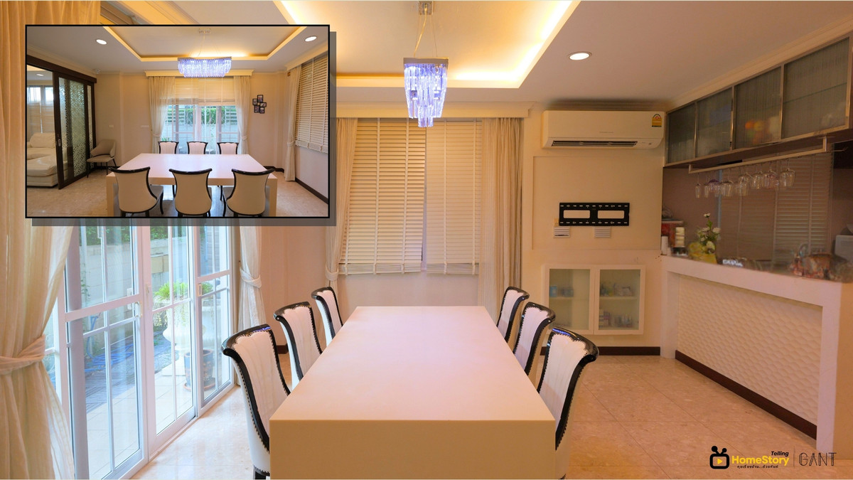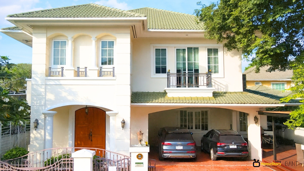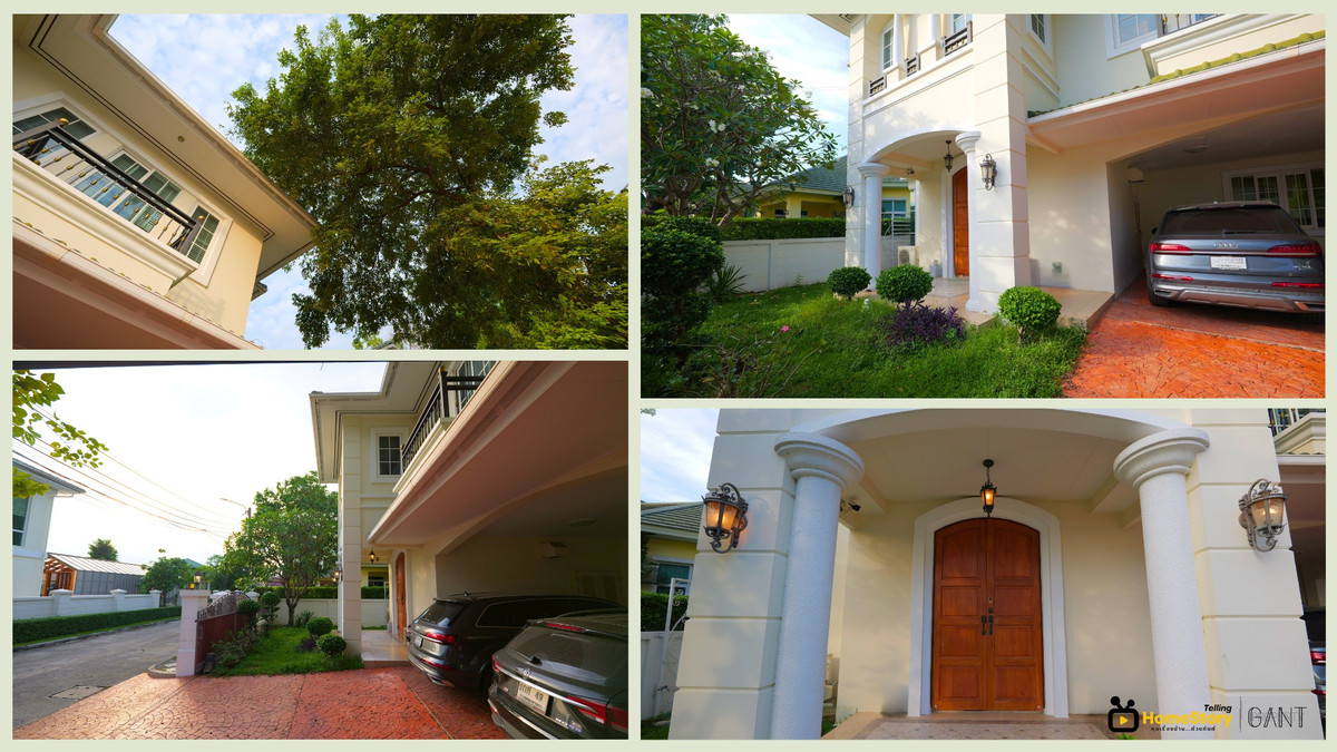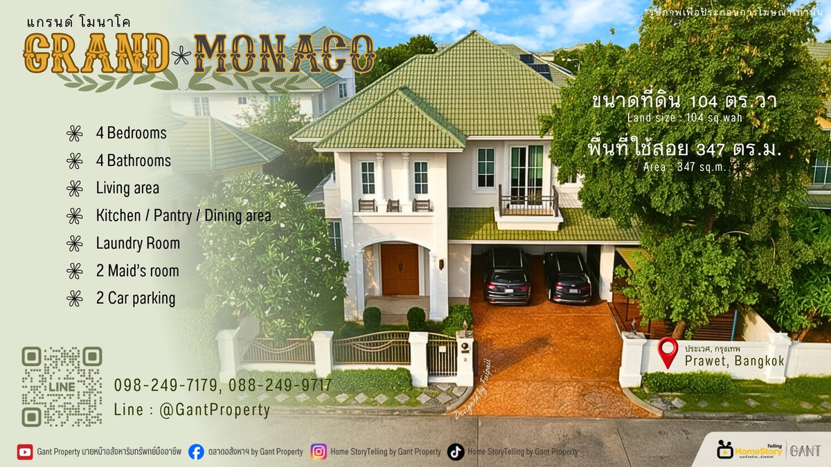 Beautiful 4-bedroom detached house for sale, ready to move in, in Grand Monaco Village, Bangna-Wongwaen (Gant-313). House details: Land area: 104 square wah Large house with 347 square meters of usable space 2-story house with 4 bedrooms, 4 bathrooms, 2 kitchens, 2 maid's rooms, and 2-4 parking spaces Beautifully decorated and ready to move in Extended pavilion in front of the house Prime location near the village lake, ideal for walking, exercising, and relaxing Village amenities include 24-hour security, swimming pool, and fitness center Common area fee: ฿38 per square wah (upfront payment discount) Selling price: only 18 million baht Contact Khun Kant: Tel: Contact number, Contact number Line: @GantProperty